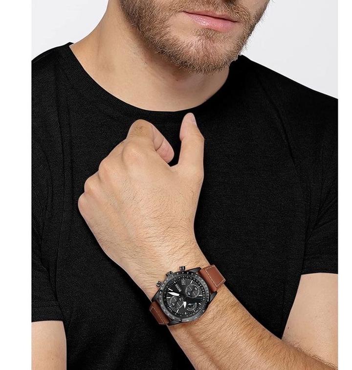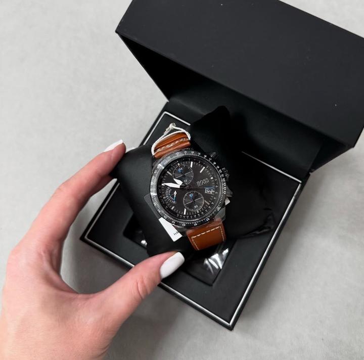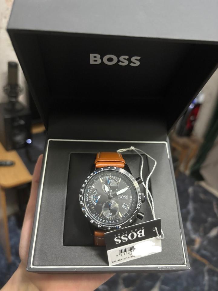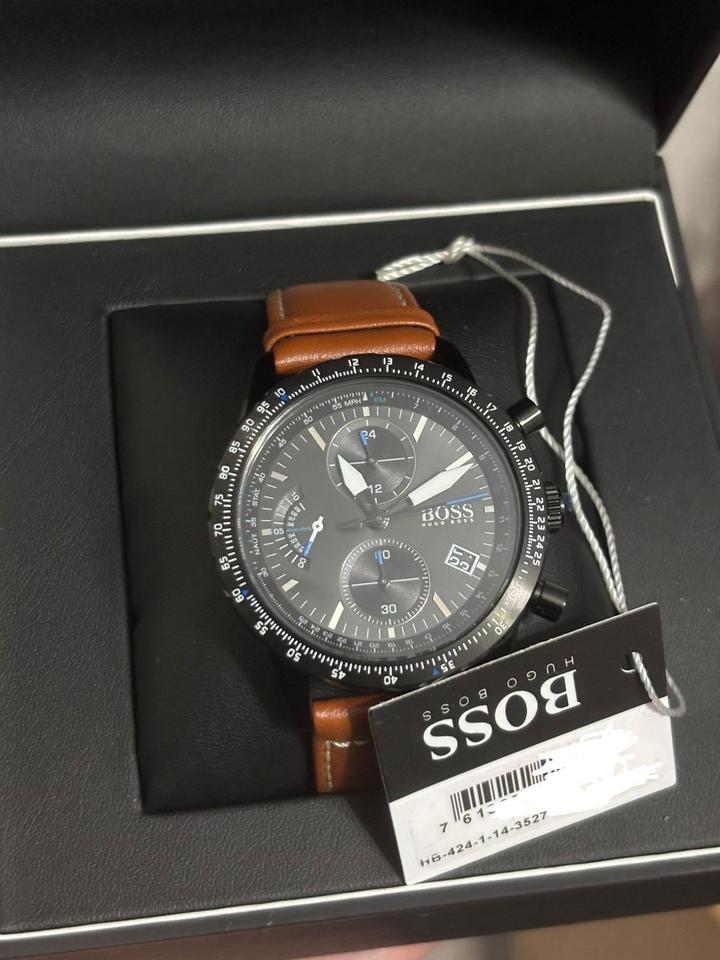 Часы BOSS с кожаным ремешком в почти в новом состоянии, надевались 3 раза. Кварцевые, тип циферблата стрелочный, стекло минеральное, материал корпуса - нержавеющая сталь, водонепроницаемость 50м., форма корпуса круглая, питание - батарейка. Артикул: 588116