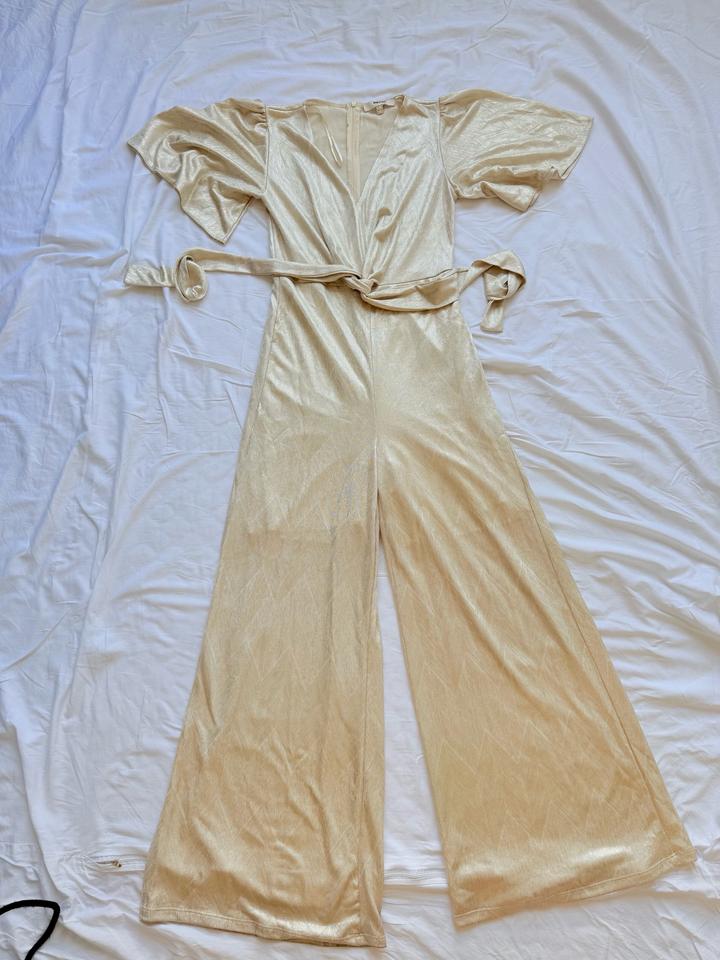Золотистый комбинезон, выглядит стильно и дорого. Надевался всего один раз — на вручение диплома и вечернее мероприятие. Привезён из Стамбула. Состояние идеальное, без дефектов. Артикул: 588145