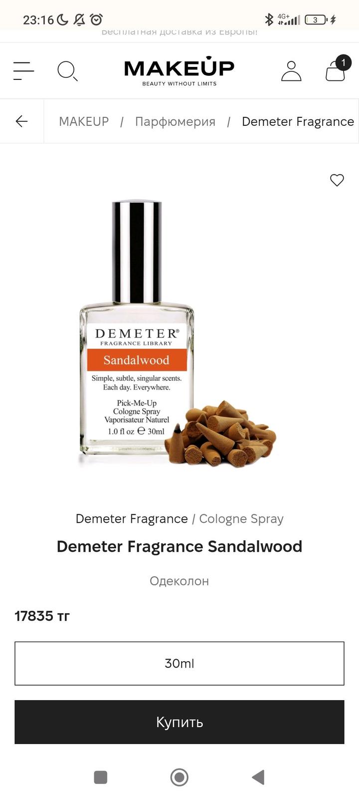 💸 Введите при заказе промокод LDS813 и получите 2000 тг на первый заказ Я поклонница данного бренда и у меня большая коллекция. К сожалению не все ароматы подходят. Стала пользоваться Demeter так как на всё остальное аллергия и вообще особые отношения с ароматами. Духи оригинал 100%. Ароматы шикарные хоть и не подошли Сандал унисекс Артикул: 588200