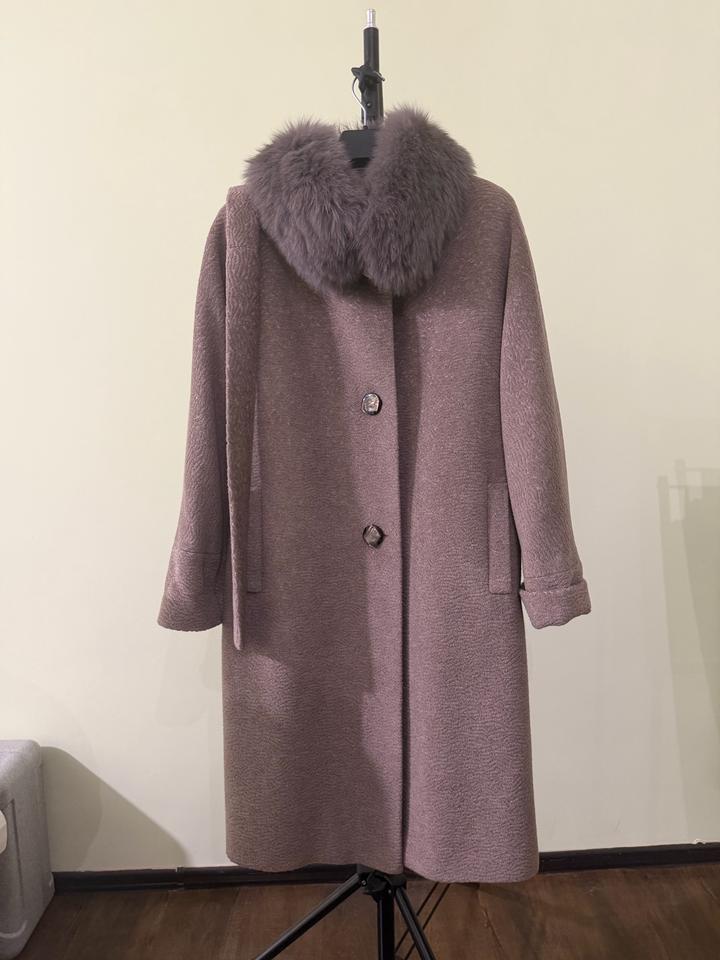 Качественное утепленное пальто. Съемный меховой воротник . Артикул: 588292