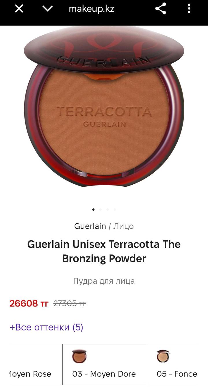 Пудра - бронзатор Guerlain terracotta. Пользовалась редко, натуральный состав, очень приятный запах, текстура. Подробное описание в фотографиях. Артикул: 588304