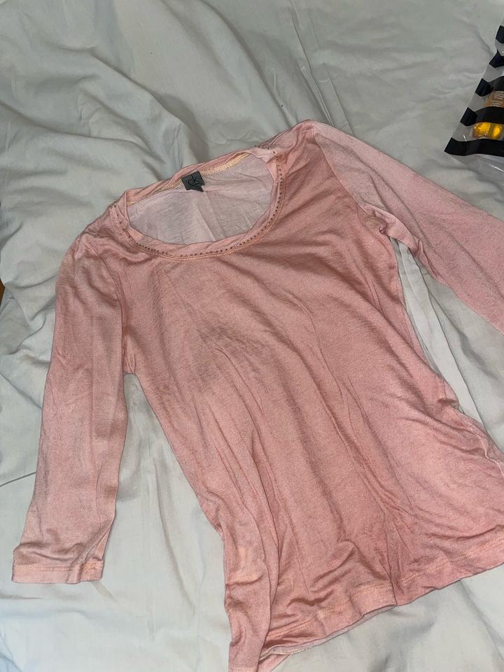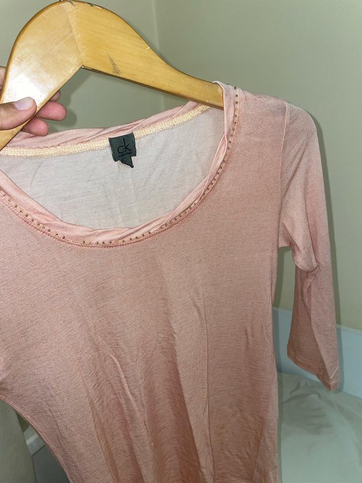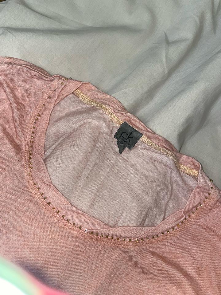 Легкий топ Calvin Klein с круглым вырезом, украшенным бисером Рукав 3-4 Подойдет на XS, для S может будет маловат Цвет кораллово-розовый Винтаж, оригинал В Y2K стиле Артикул: 588360