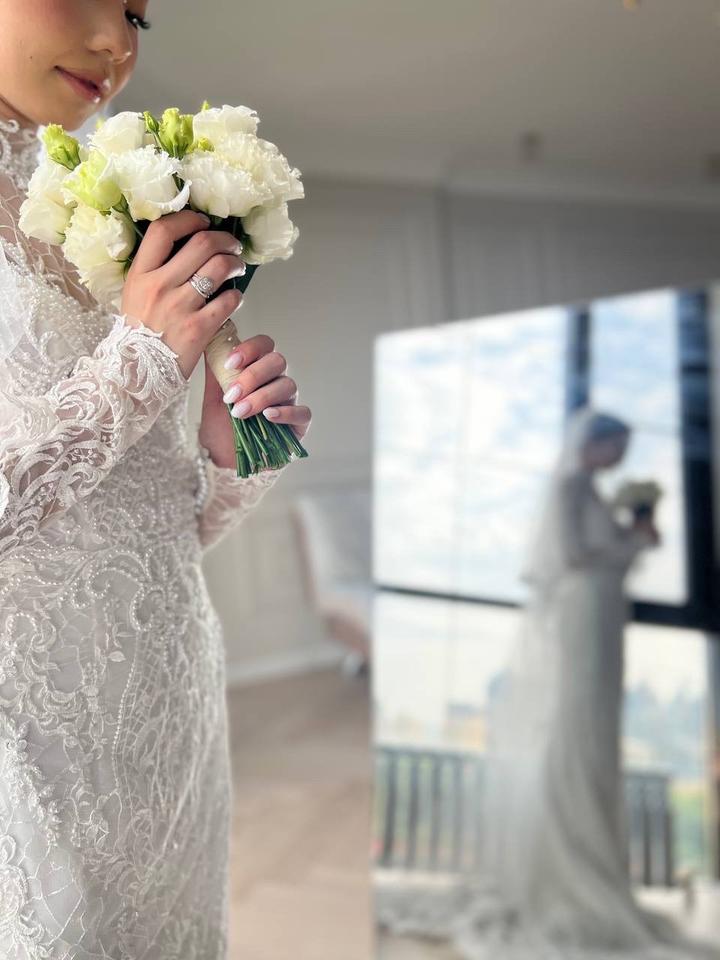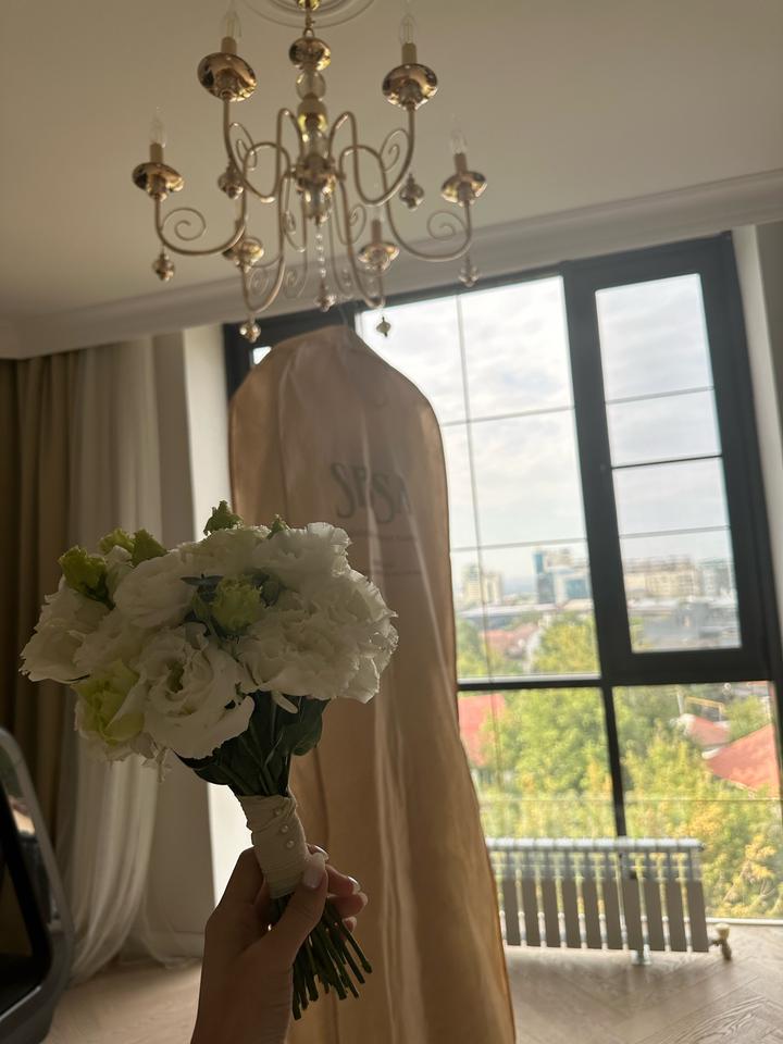 Покупала в @sposaalmaty, пыльник в комплекте Платье очень удобное и легкое, ничего не мешает можно спокойно танцевать, ходить и даже идти в туалет без подруг. Очень классно сидит по фигуре На фото можно увидеть все детали, все продумано до мелочей и при этом выглядит очень сдержанно есть застежка для шлейфа У меня размер XS-S, рост 162 Артикул: 588363