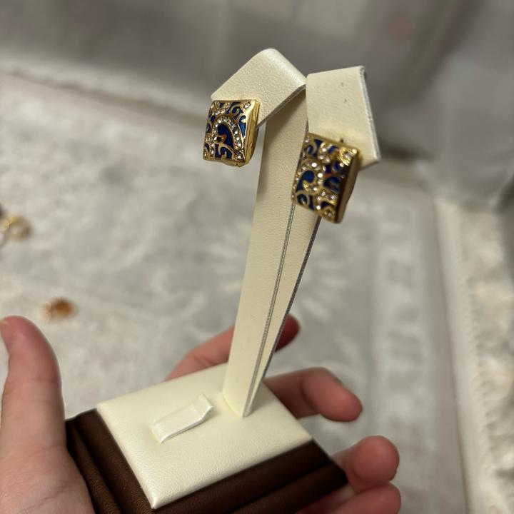 Квадратный фасондағы эмаль араласқан жеңіл ыңғайлы сырға Артикул: 588365