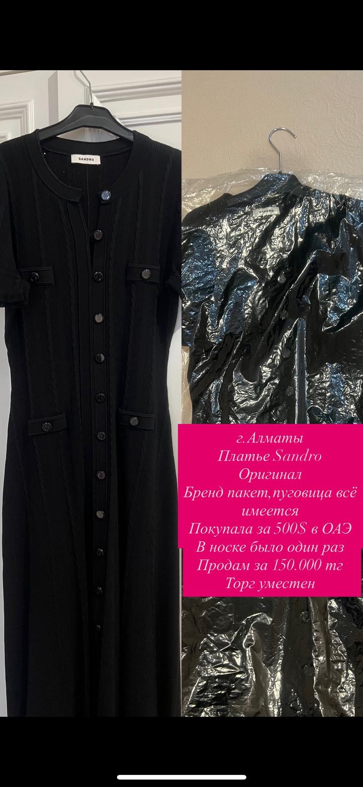 Оригинальное черное платье выше колено от Sandro. Размер 46-48. В носке было один раз на 3 часа. Бренд пакет,запасная пуговица ,все имеется ,чек если найду приложу Артикул: 588403