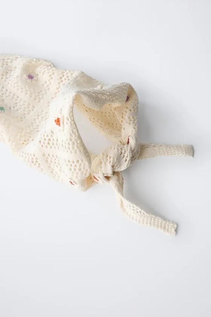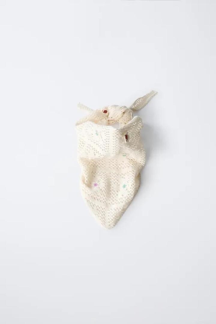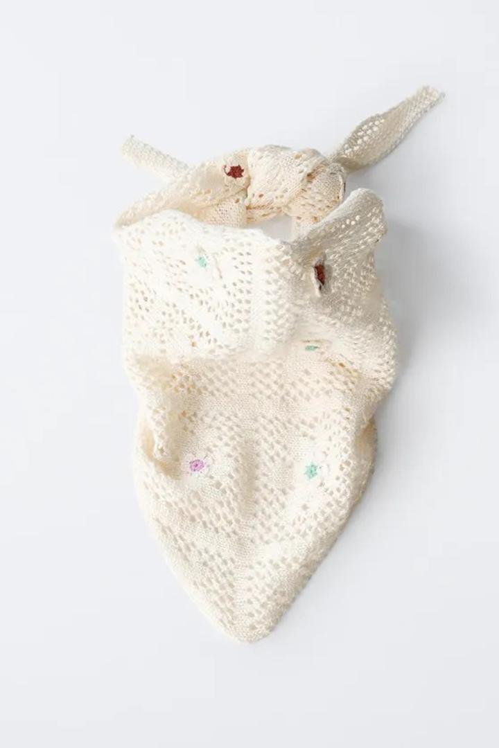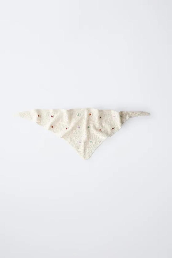 Треугольный платок из кружева кроше с цветочной цветной вышивкой Можно и ребёнку, как летняя косынка Артикул: 588413