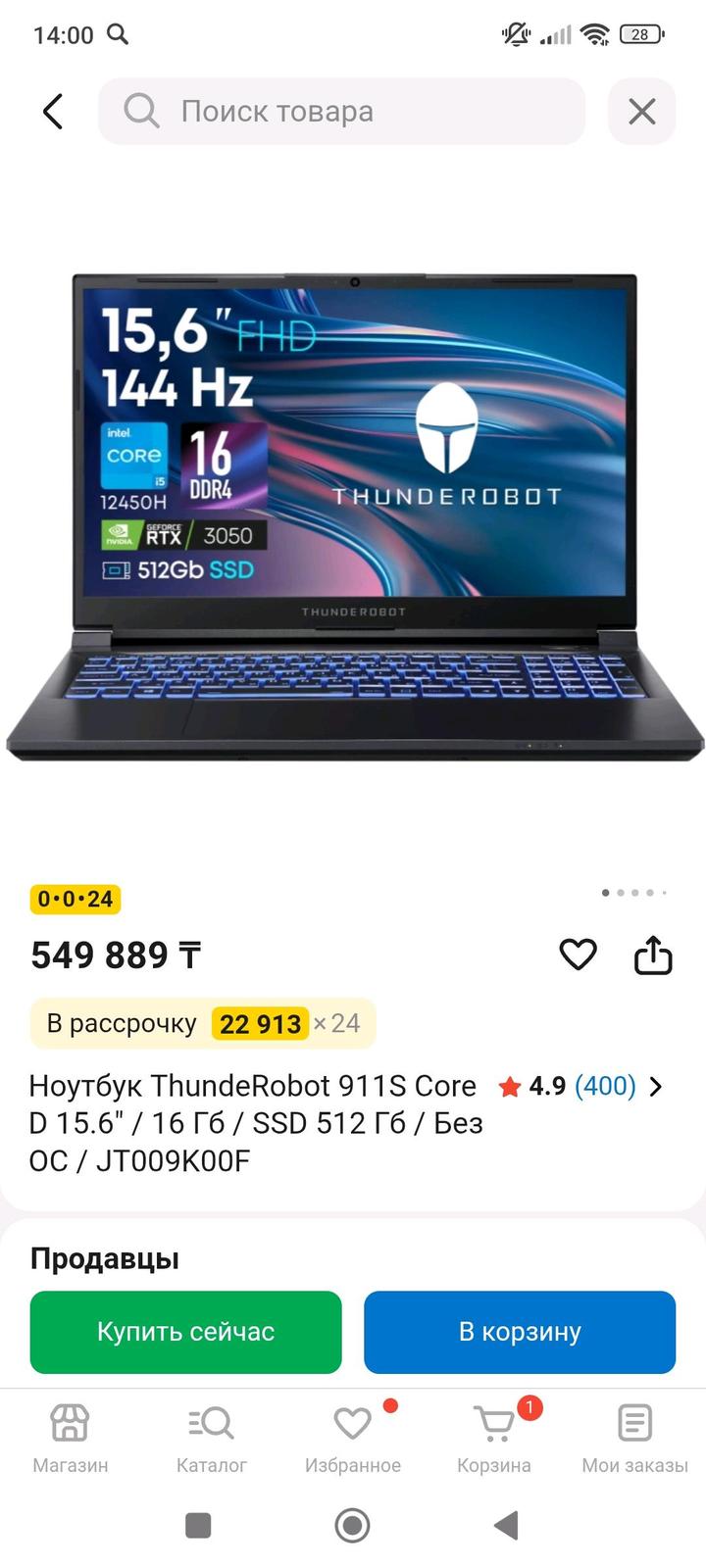 Продам своего красавчика,с которым ну никак не хочу расставаться но есть такой же второй) - Игровой Ноутбук _"ThundeRobot 911S Core D 15.6"/16 Гб /SSD 512 Гб/JT009K00F"_ с последней версией ОС Windows 11. Покупали через интернет магазин банка на подарок, стоимость на сегодняшний день указана в первом фото этого объявления, ещё действует гарантия до апреля этого года.Минусов, недочётов,брака нет, состояние отличное,практически не пользовались.Отсуствует только коробка,выбросили за ненадобностью. Артикул: 588433