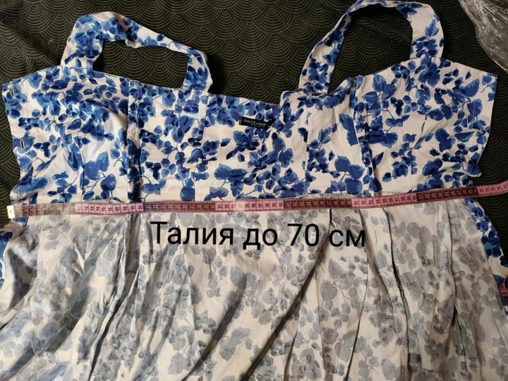 Сарафан под Dolce & Gabbana. Размер сильно маломерит, на этикете М, по факту примерно XS. Замеры видно на фото, если вы шире то не подойдет скорее всего. А так ткань качественная хлопок смесовый, немного тянется, форму прекрасно держит и не сильно мнется. На груди двойной слой. Артикул: 588448