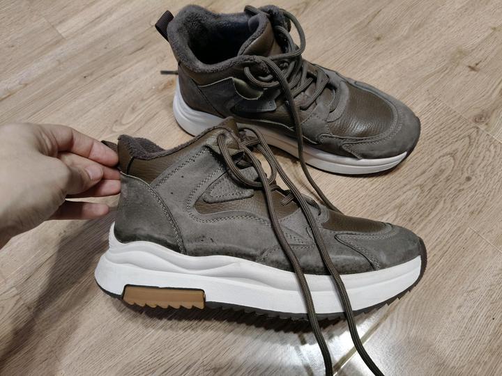 Внутри рыбий мех, по высоте прикрывают щиколотку. Размер 38 полноразмерный, ширина тоже хорошая. Покупала в kimex. Носила 1 сезон. Состояние видно по фото Артикул: 588458