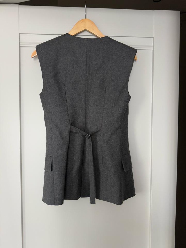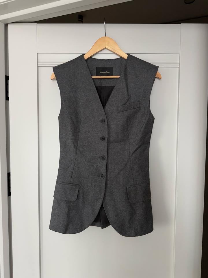 Темно серая жилетка с Massimo Dutti. Ткань очень нежная, носила пару раз. Немного удленная в длине, хорошо подойдет в любом стиле. Артикул: 588461