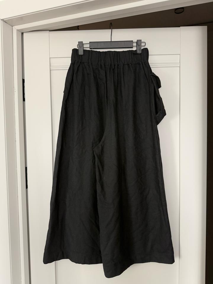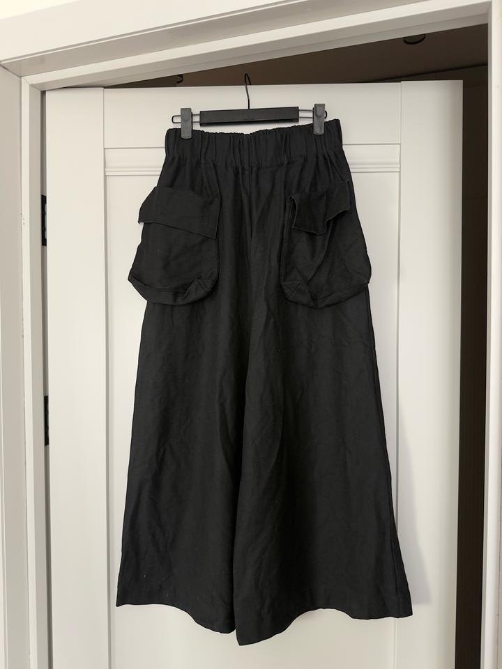 Черные штаны в интересном стиле. Держатся на резинке, пошито в распахнутом стиле. Выглядит как юбка, +1деталь большие карманы. Артикул: 588468