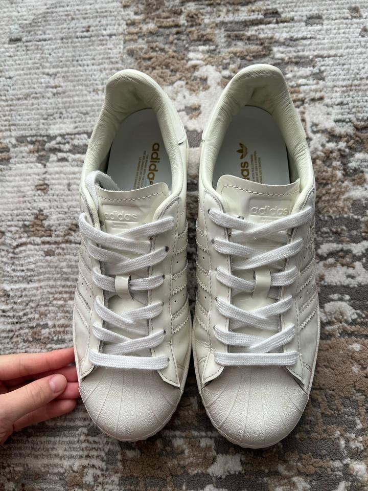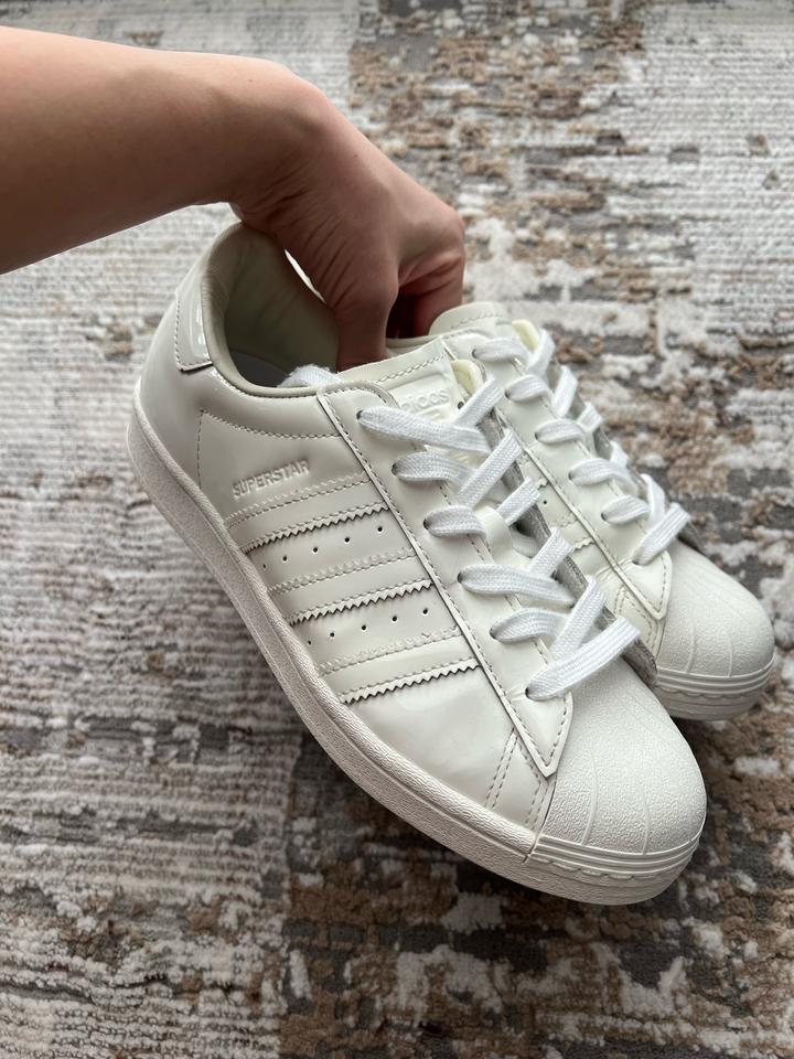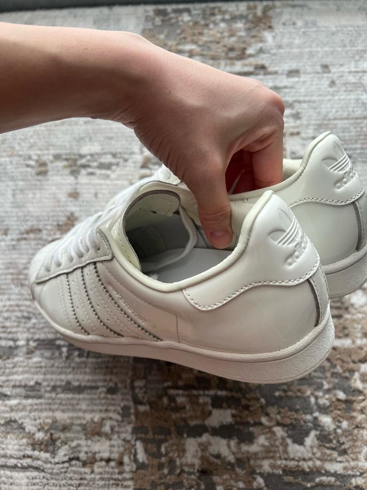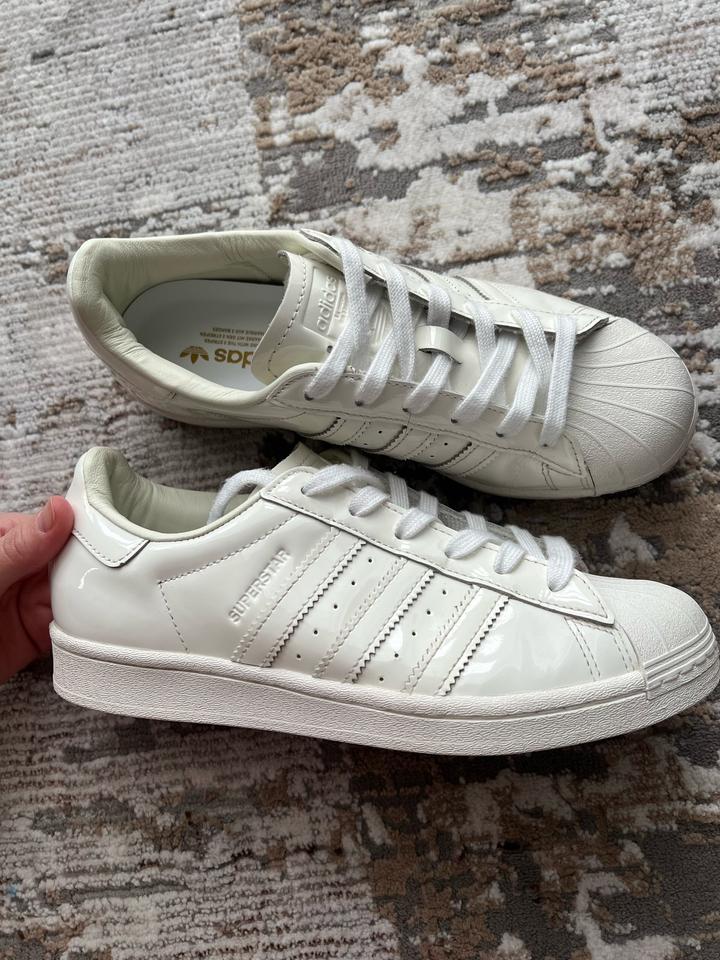 Белые лакированные кеды adidas superstar, подойдёт на 38-38,5 р , состояние новых, после химчистки обуви Артикул: 588487