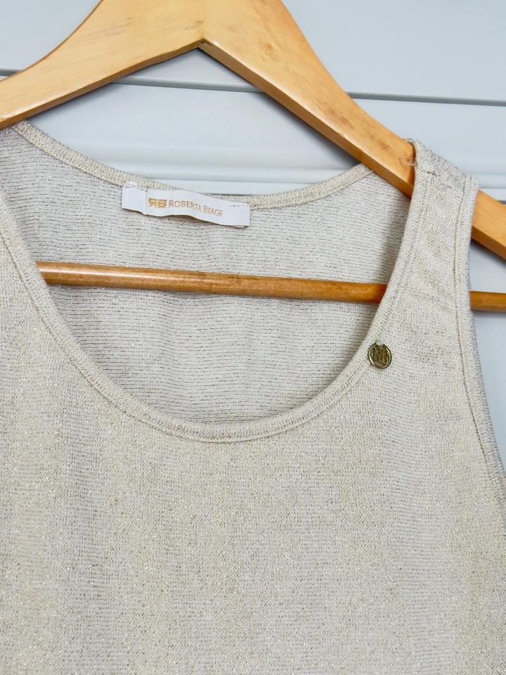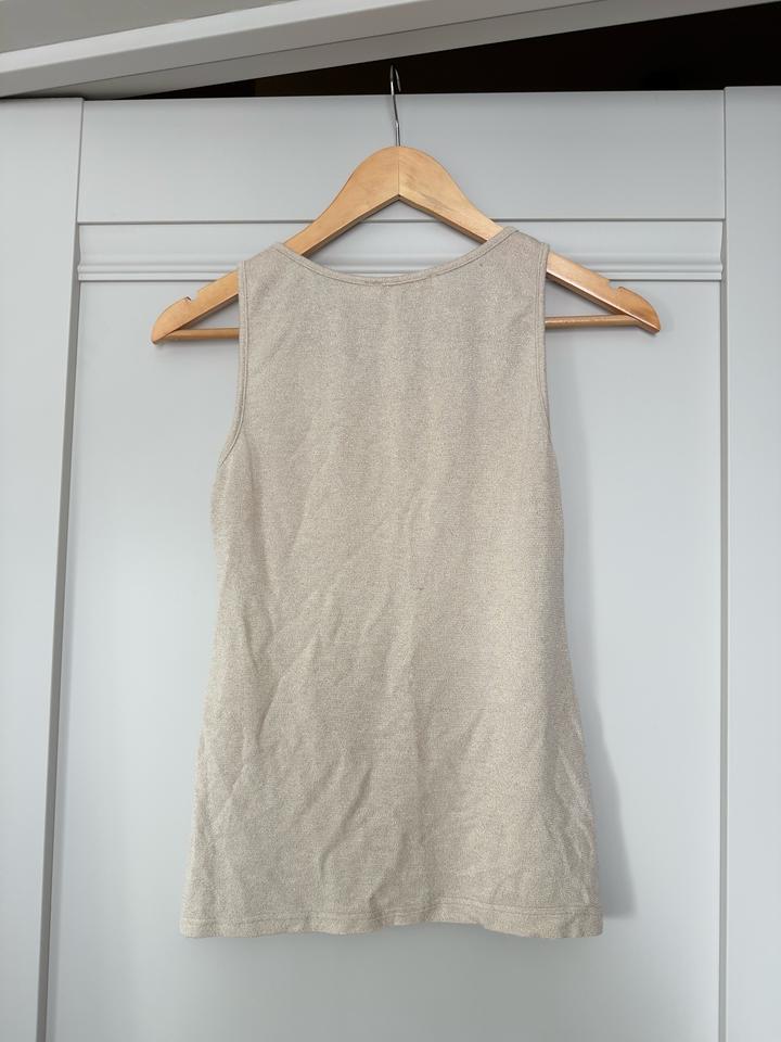 Золотая майка в хорошем состоянии, сидит отлично на теле. Носила пару раз. Артикул: 588491