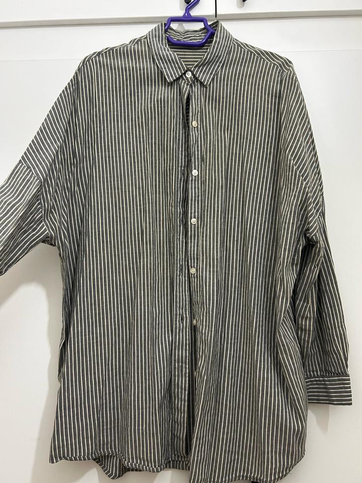 Рубашка в полоску Bershka в оверсайз фасоне-стильная базовая вещь на каждый день. Лаконичный дизайн в серо-белую полоску легко сочетается с любым гардеробом, а свободная посадка обеспечивает комфорт. • Бренд Bershka • Оверсайз фасон • Вертикальная полоска • Универсальный серый оттенок • Подходит для повседневных и офисных образов • Сочетается с джинсами, брюками и юбками Артикул: 588541