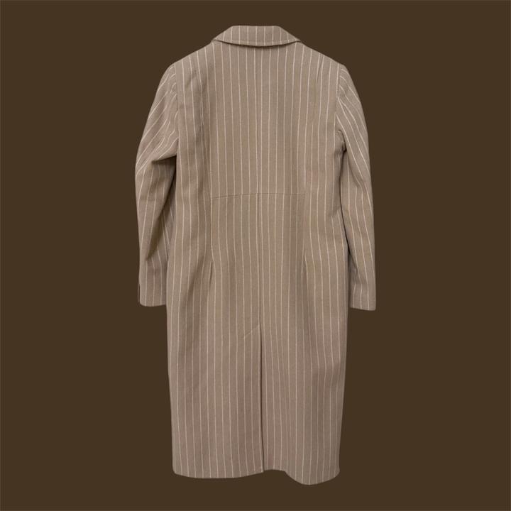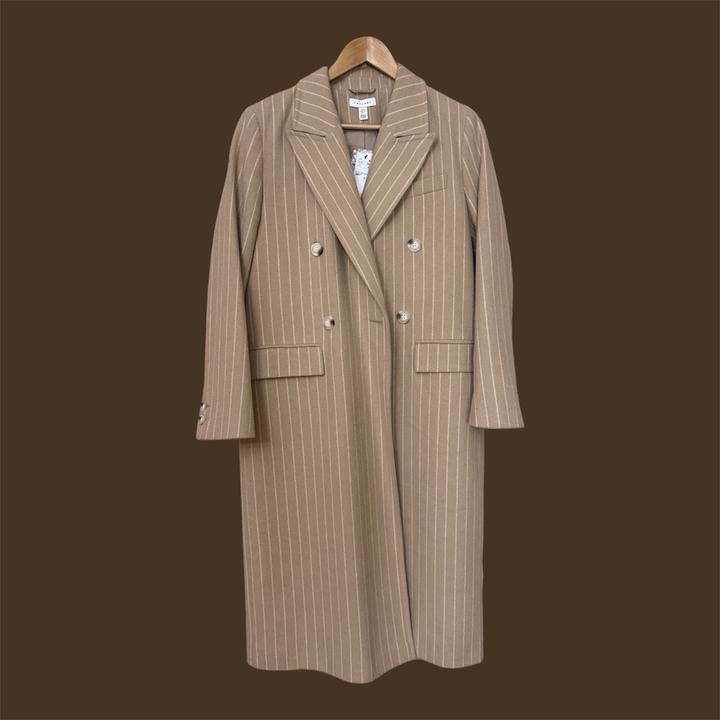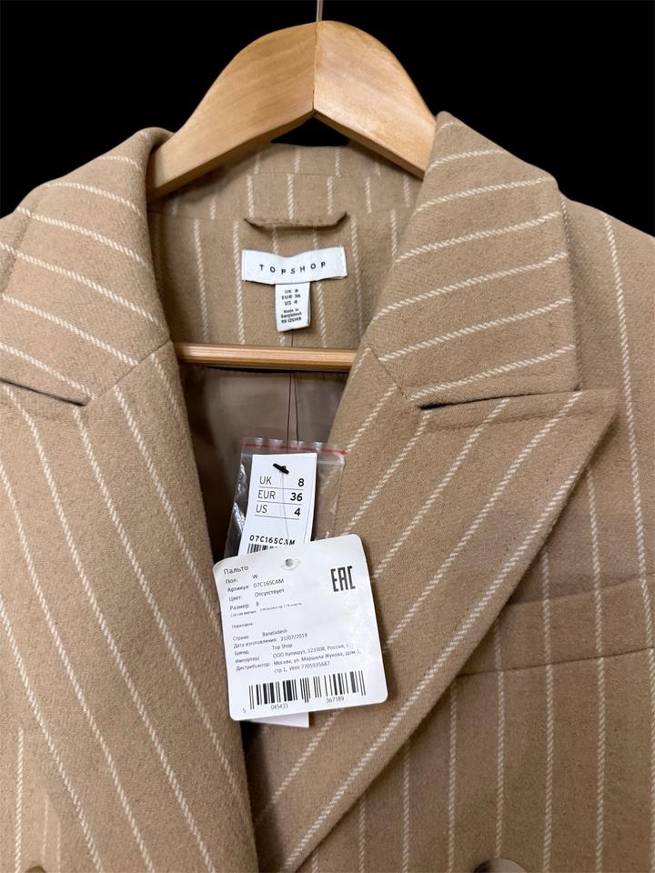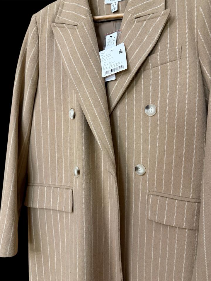 Двубортное пальто бежевого цвета вертикальную полоску от бренда Topshop. Новое, с биркой Артикул: 588559