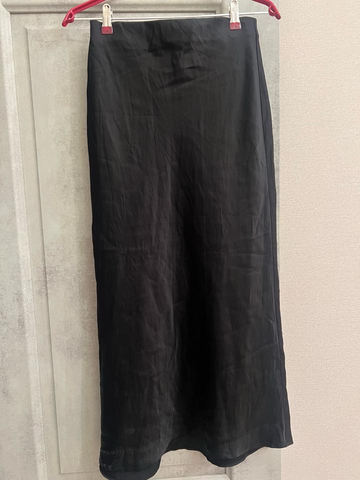 Чёрная сатиновая юбка massimo dutti , ткань плотная , состояние отличное , с размер, на рост 170 по щиколотку Артикул: 588561
