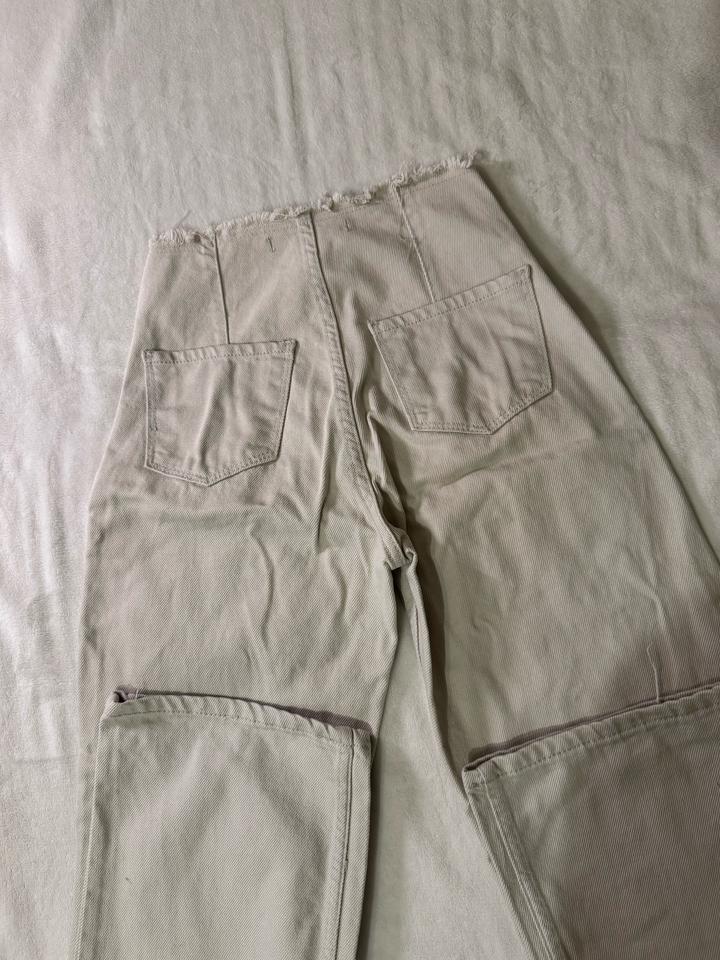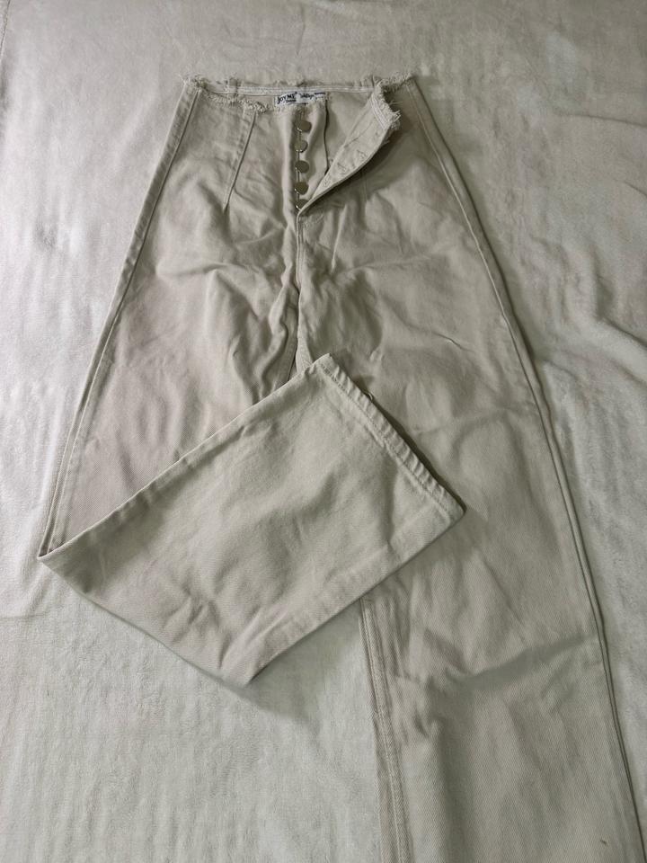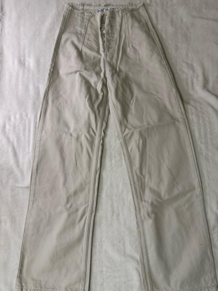 Бежевые джинсы, плотные, прямые. Хорошо сидят в талии и на бедрах, стройнят фигуру. Пополнела, не влезаю. Мои параметры на момент носки: рост 160 см, вес 50 кг Артикул: 588690