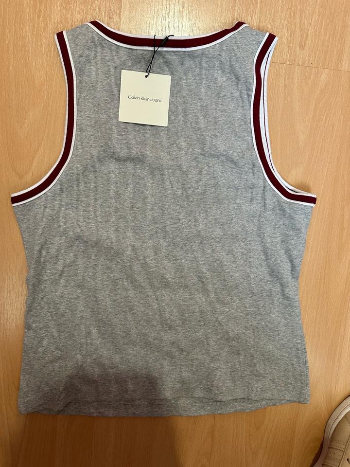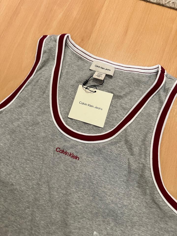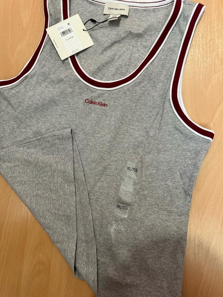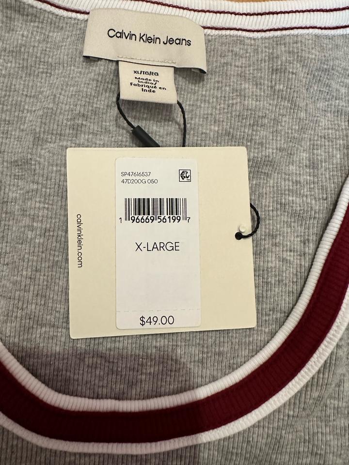 Новый топ Calvin Klein, цвет серый с бордовыми ставками, размер ХЛ Артикул: 588696