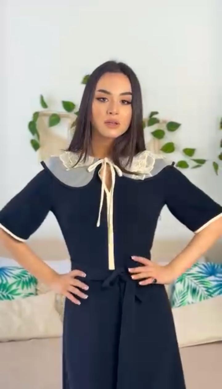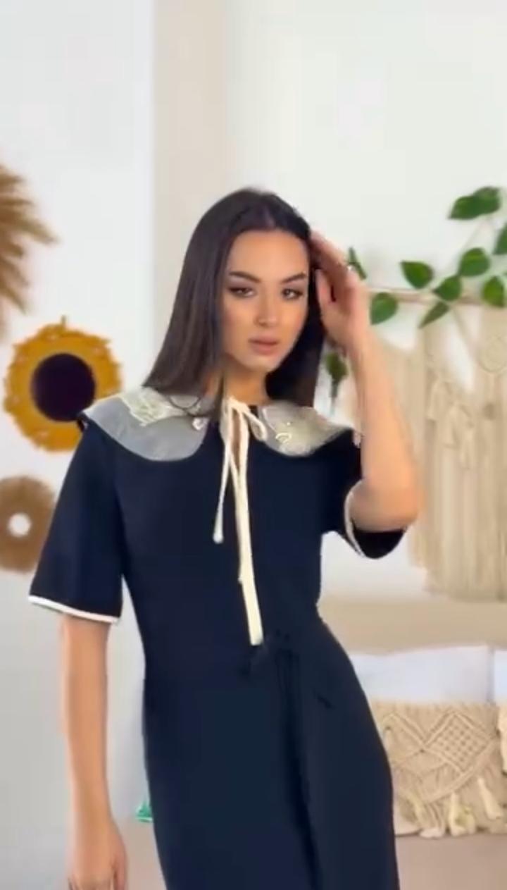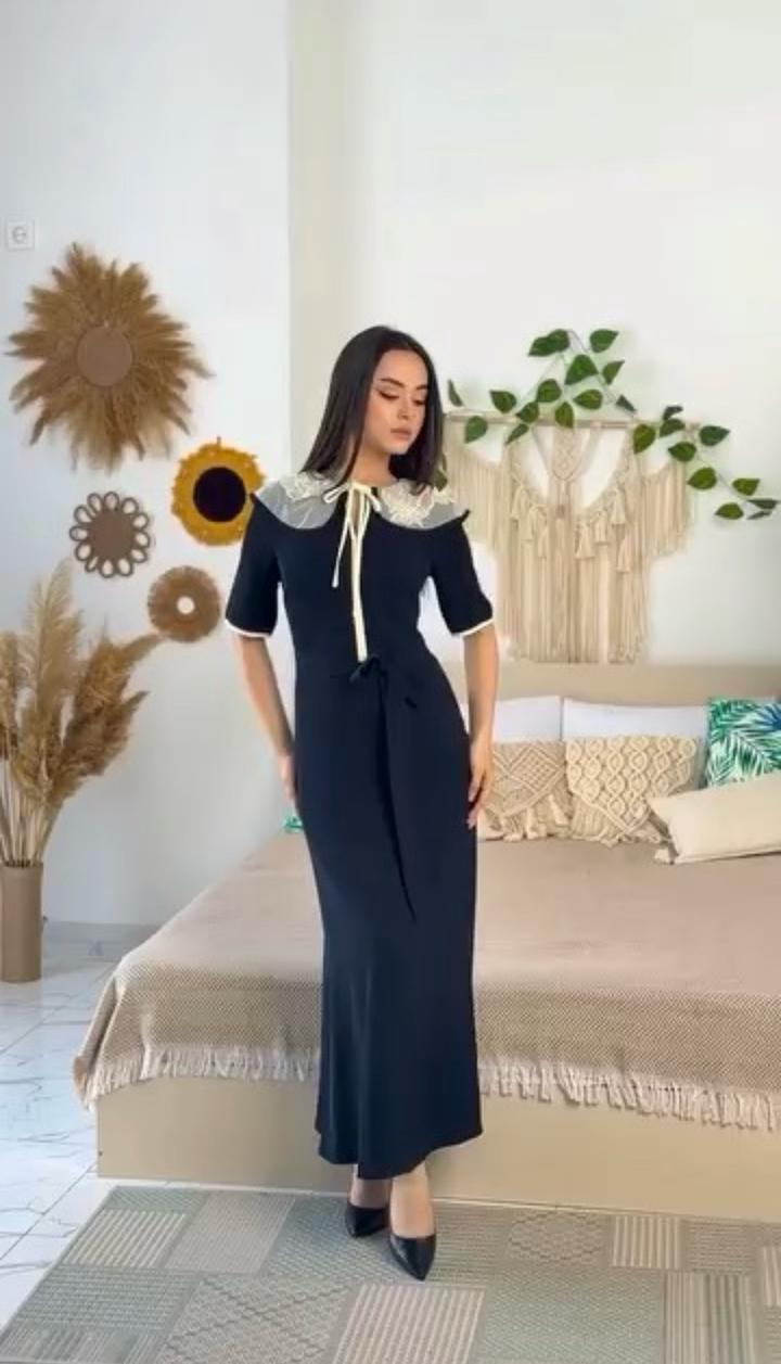 Черное платье от бренда Si белым кружевным воротником Артикул: 588700