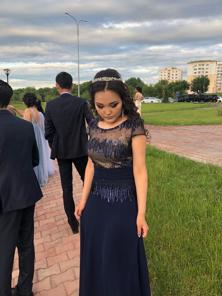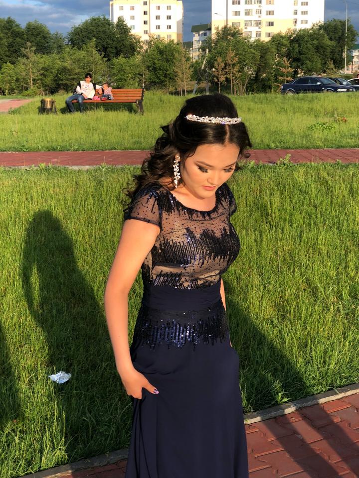 Тёмно-синее платье Надевалось всего один раз, состояние идеальное. Смотрится элегантно и аккуратно. Без дефектов Артикул: 588723