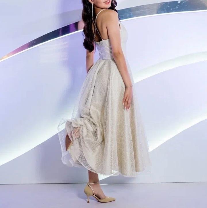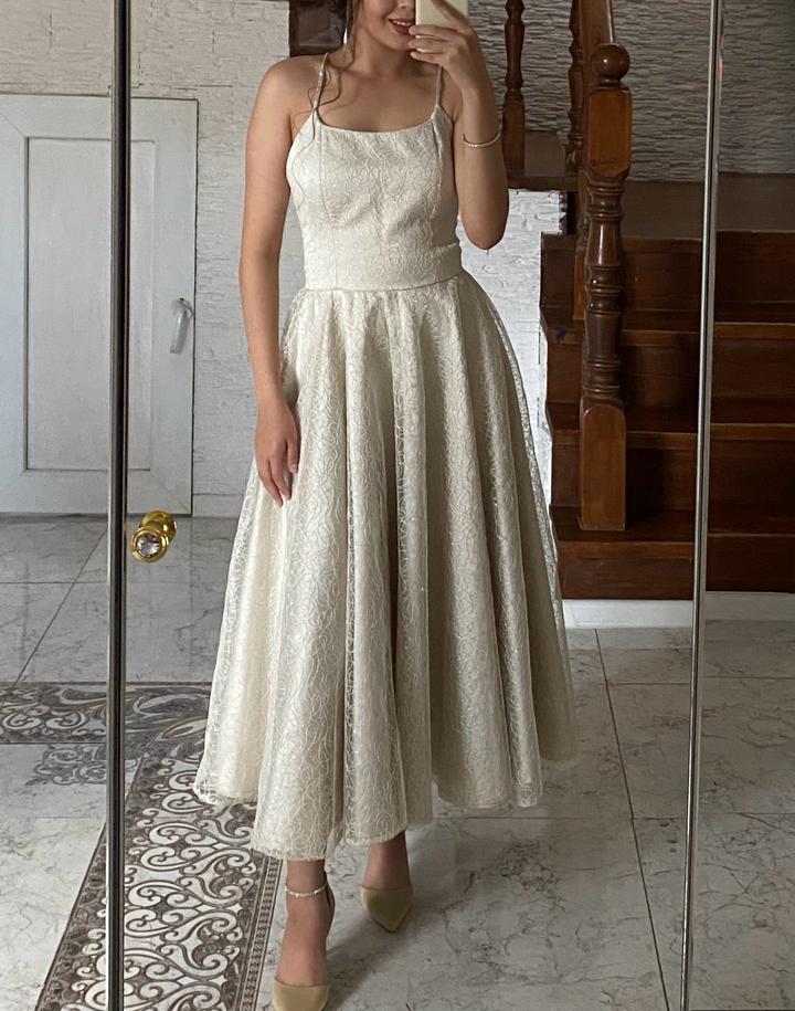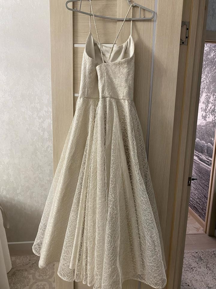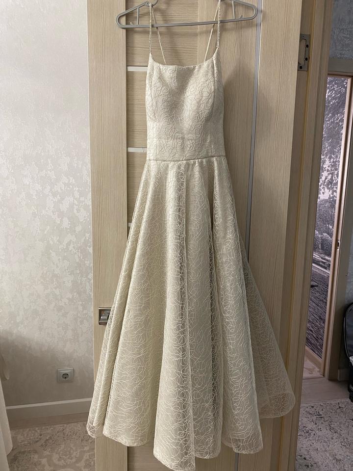 Белое платье , с блестками . Одевала 1 раз на выпускной. Без дефектов. Размер S, цвет Айвори. Артикул: 588750