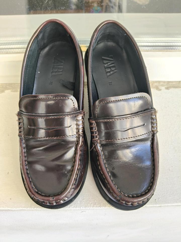 Детские лоферы размер 32. Б/у сентябрь 1 класс, в мае стали малы. Цвет бордово-коричневый. Предлагайте свою цену Артикул: 588778