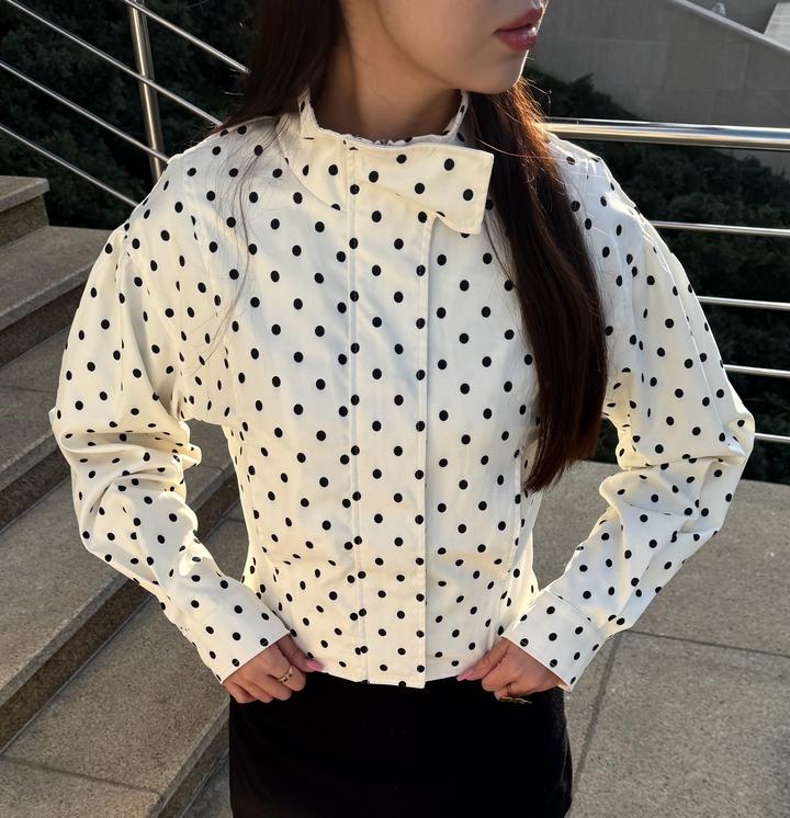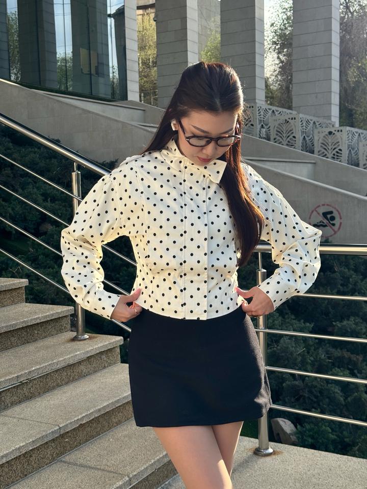 Трендовая курточка в горошек. Осталось всего пару штук! На молнии, есть клепка у воротника. Размеры S-M. Артикул: 588803