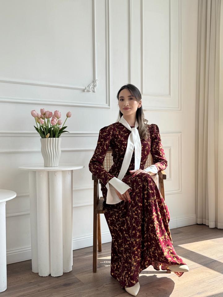 Нежнейшее и утонченное платье 😍 с самыми красивыми деталями в виде рукава и милейшего галстука ! Легкое и невесомое платье ♥️ Продаю по заниженной цене, в связи с закрытием магазина! Размеры:m l Ткань: Прада Цена: 25000 тг Артикул: 588807