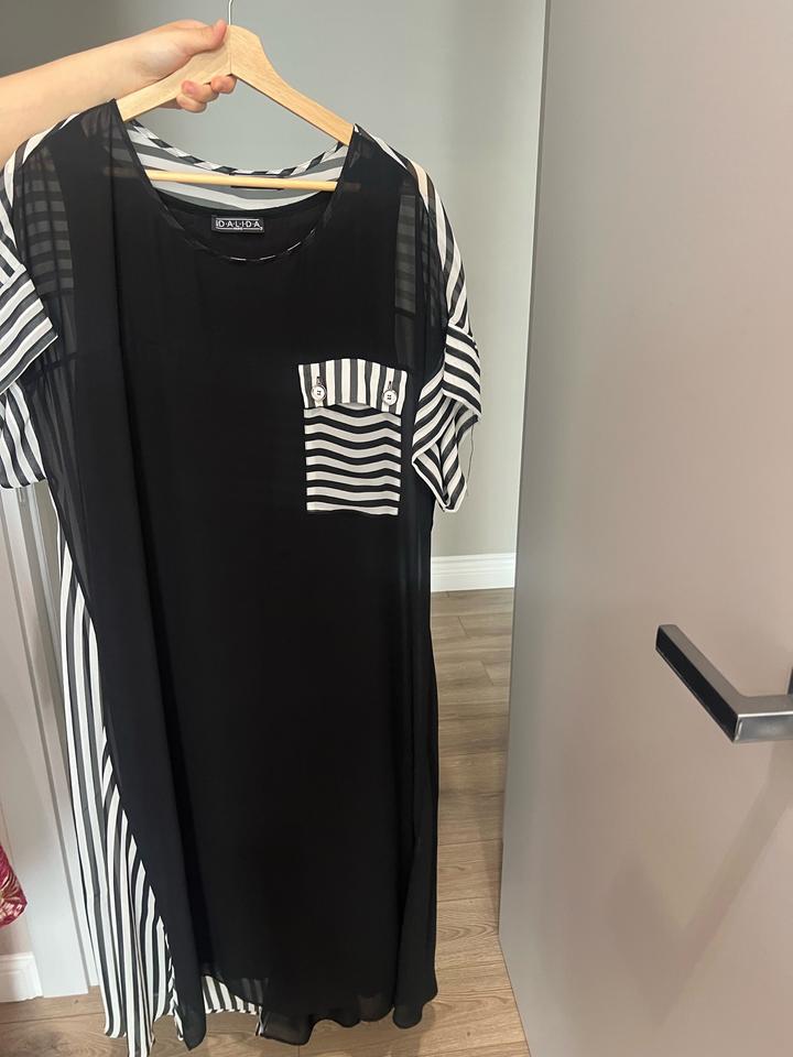 Платье шифон с трикотажной сорочкой черная с белыми элементами как на фото. . Подойдет на 52-54 размер. Турция. Состояние отличное Артикул: 588822