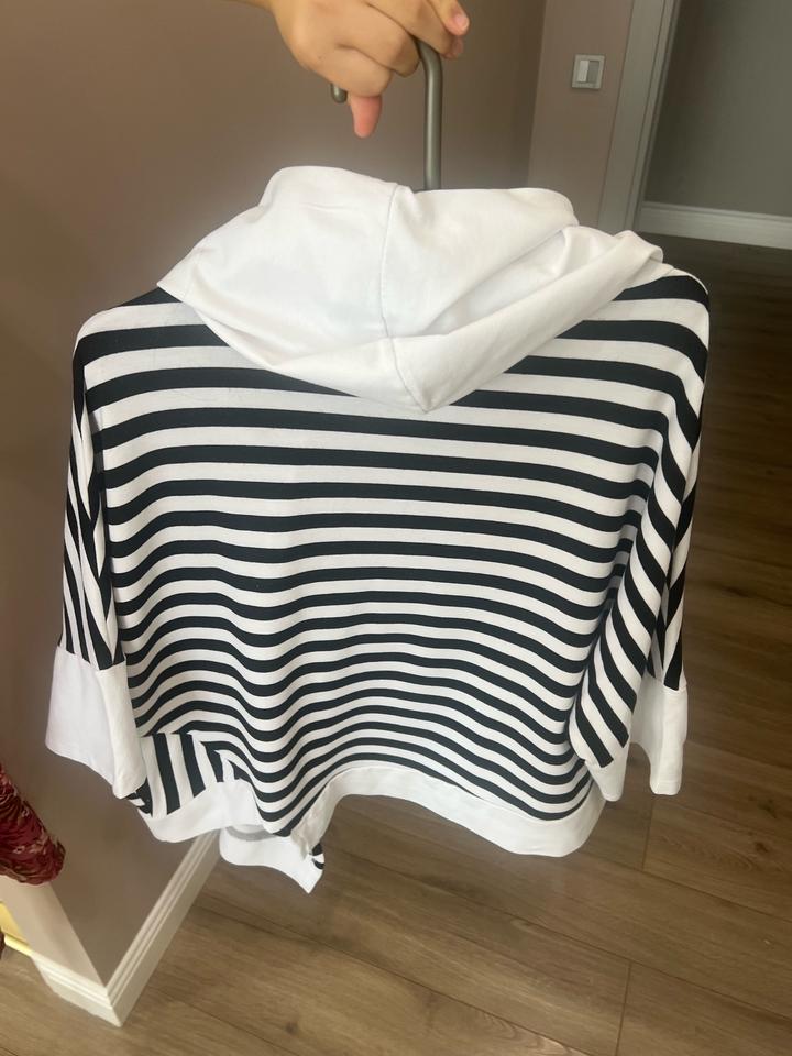 Бомбер трикотаж с боковой молнией и капюшоном. Турция. Подойдет на 52-54 размер Хорошо сочетать с черными и белыми брюками. Артикул: 588832