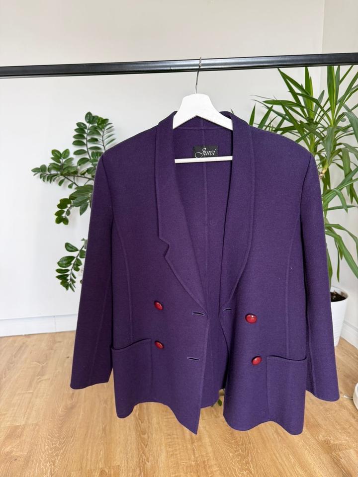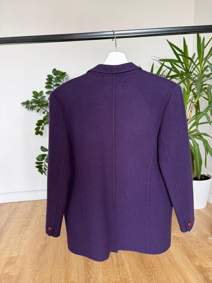 Насыщенно-фиолетовый двубортный пиджак с красными овальными пуговицами. Шалевый воротник, два кармана, фигурный низ. Японский бренд из Кобе — редкая и стильная вещь. Артикул: 588850