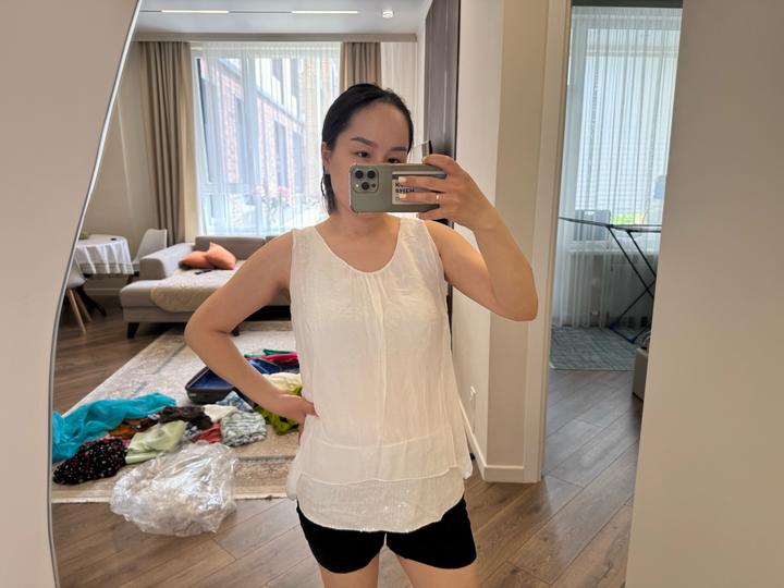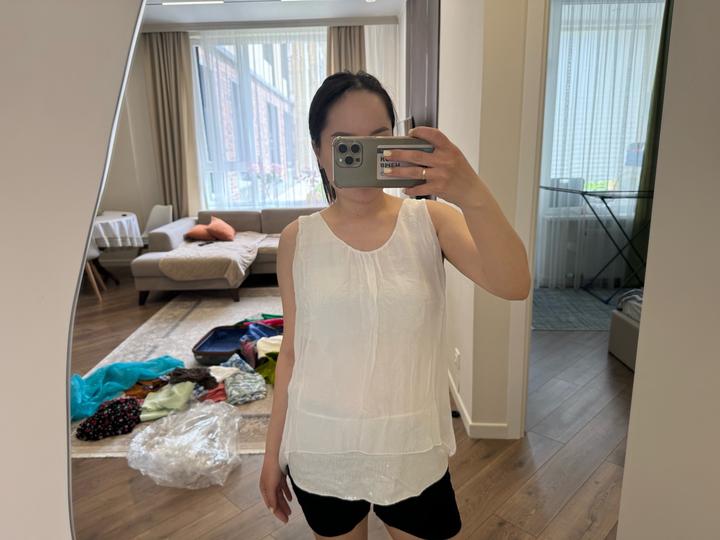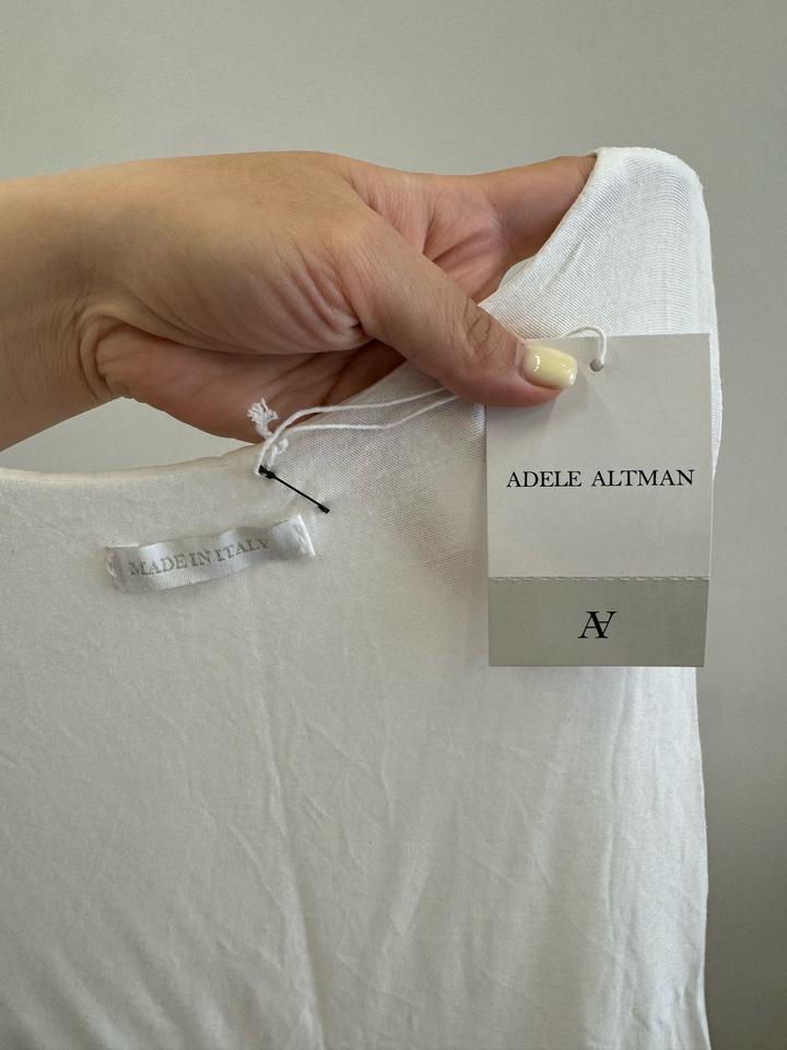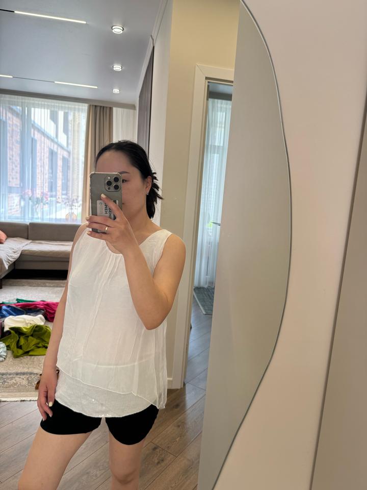 Белая майка, итальянская приятная к телу. Новая, с итекеткой. Размер подойдет на М. Снизу белые блестки Артикул: 588876