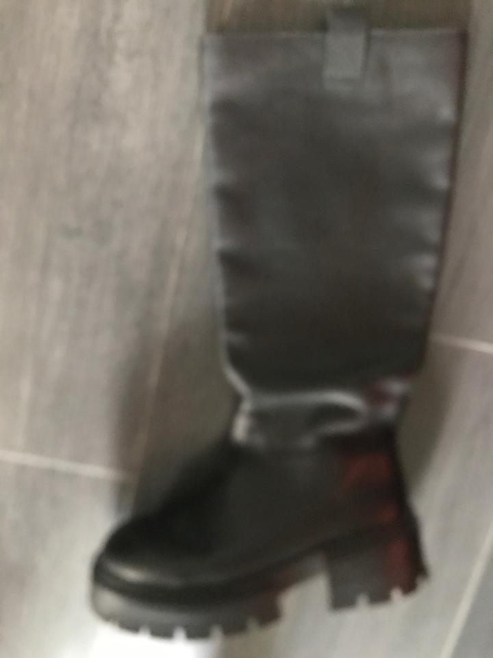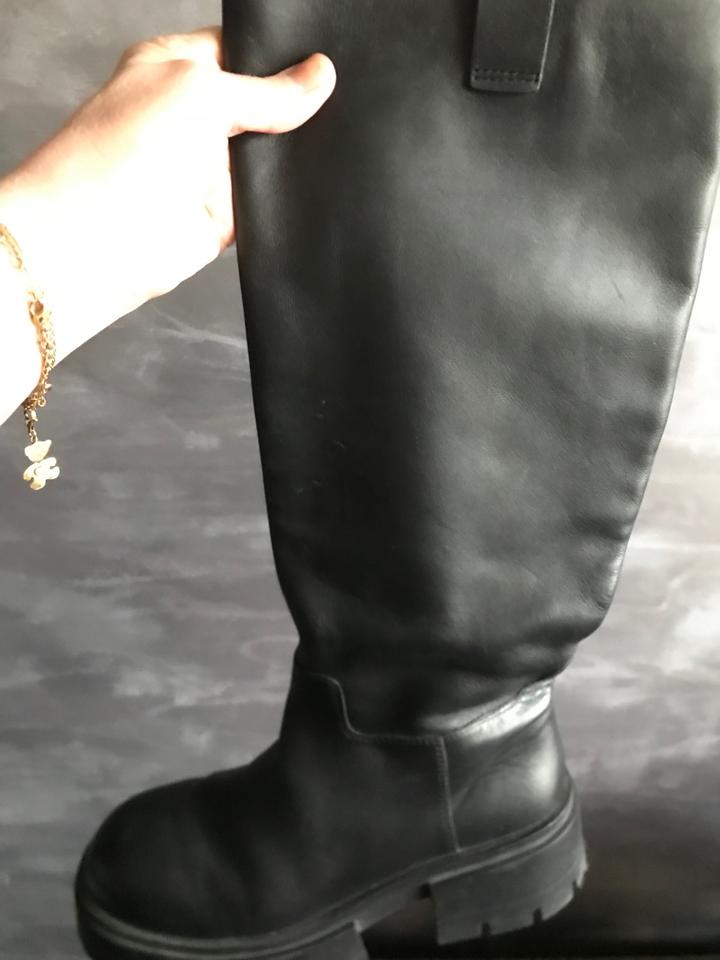 Чёрные сапоги H&M . Кожа , размер 41, высокие, широкие голенища Артикул: 588891