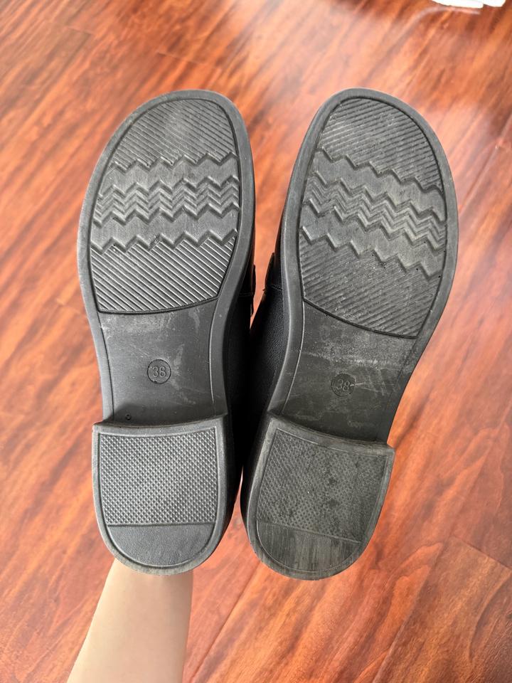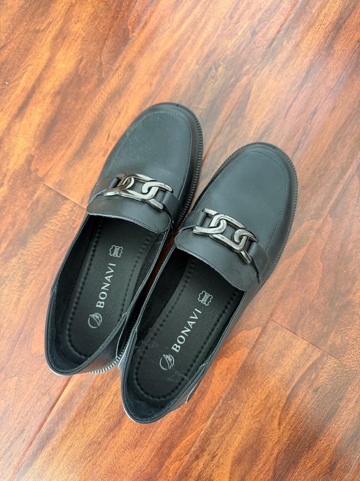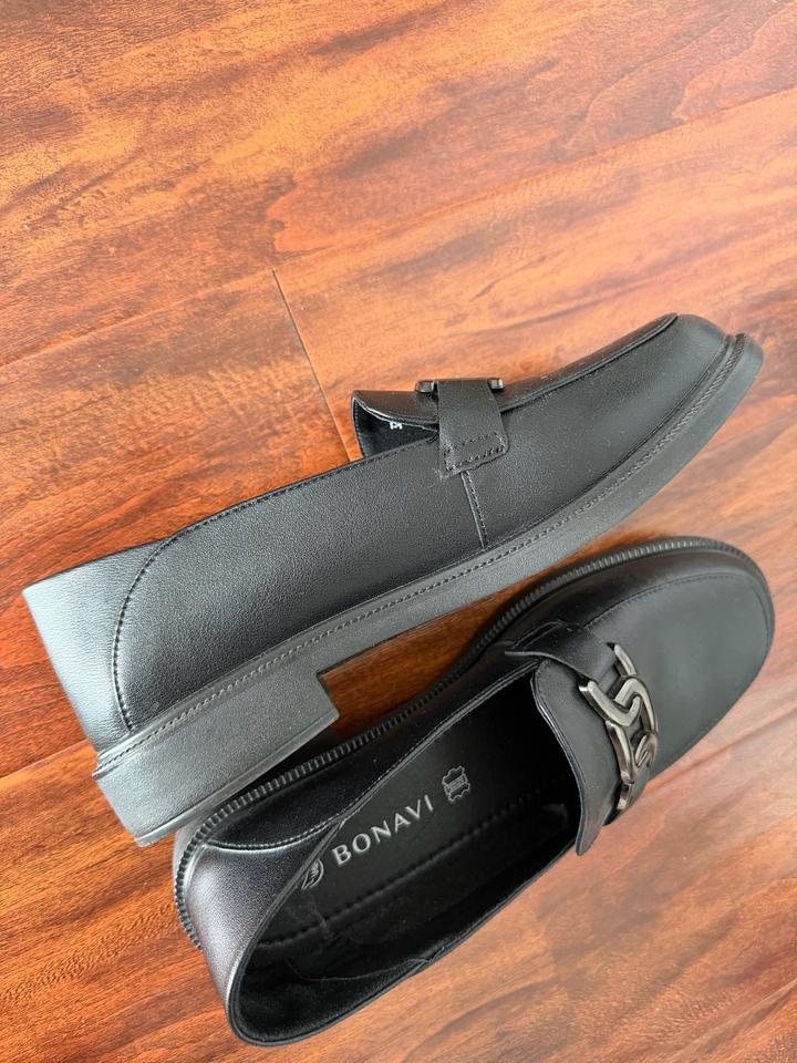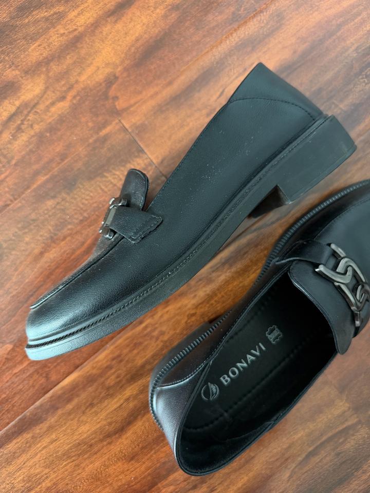 Черные кожаные лоферы с металлической пряжкой, размер 38 (на 37,5 тоже подойдут). Артикул: 588932