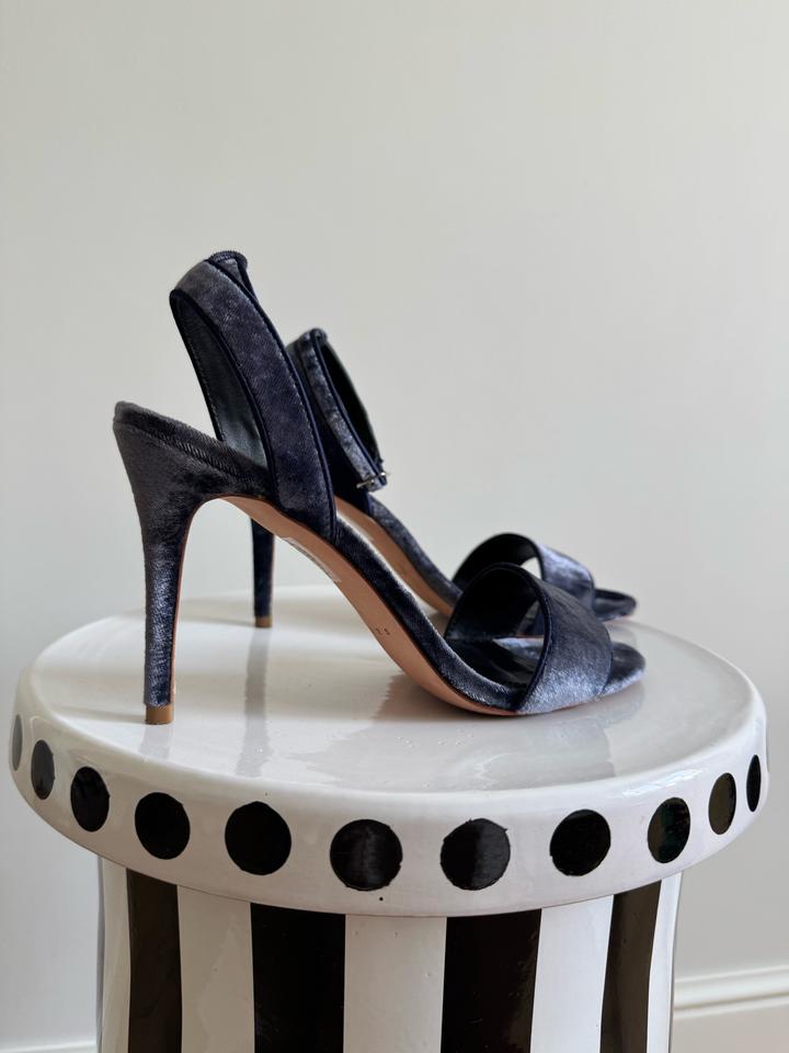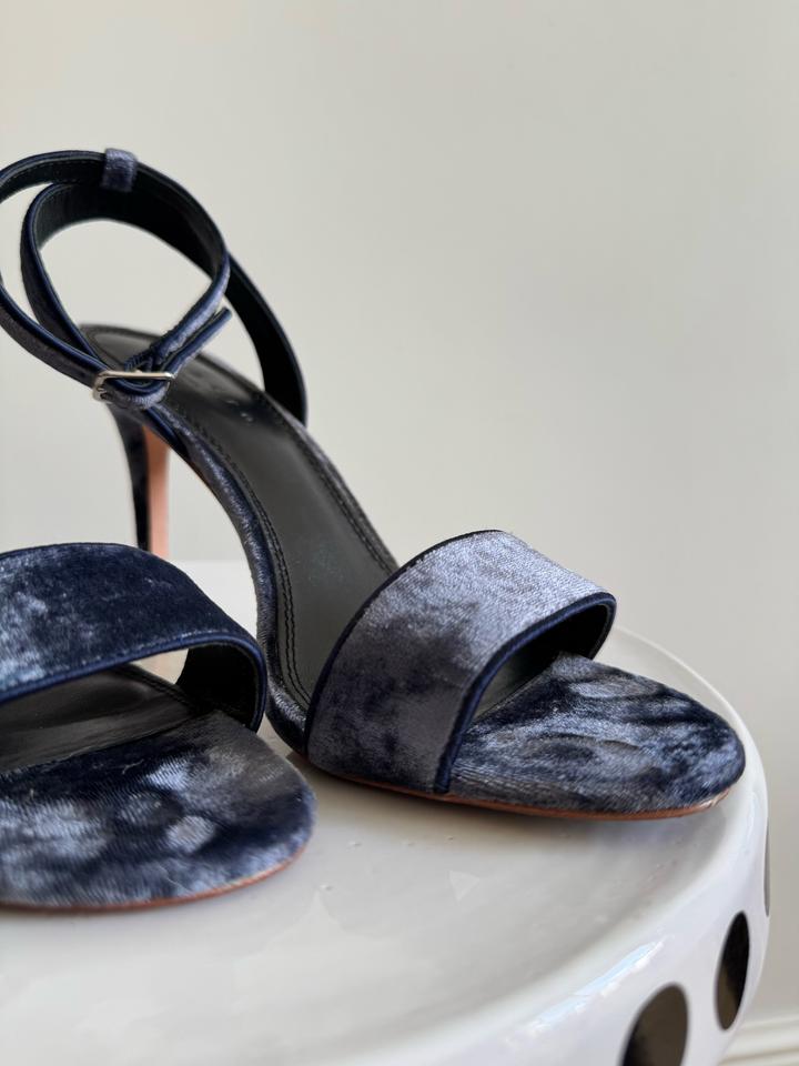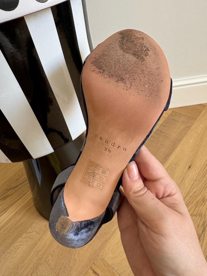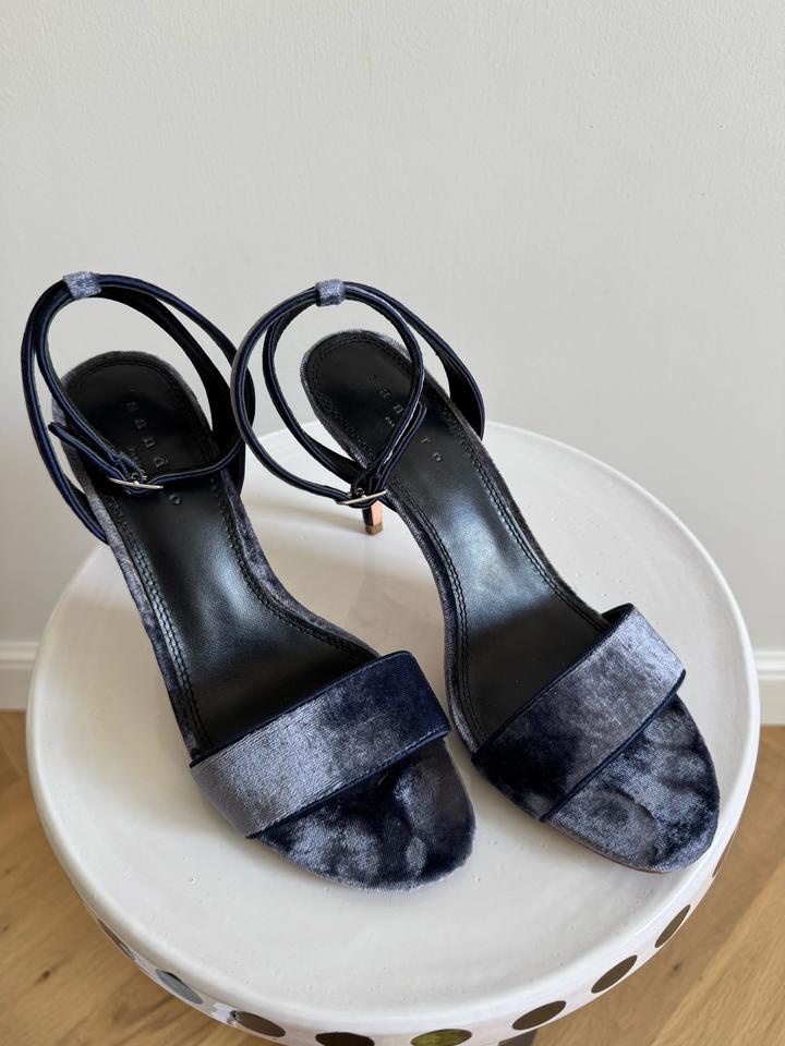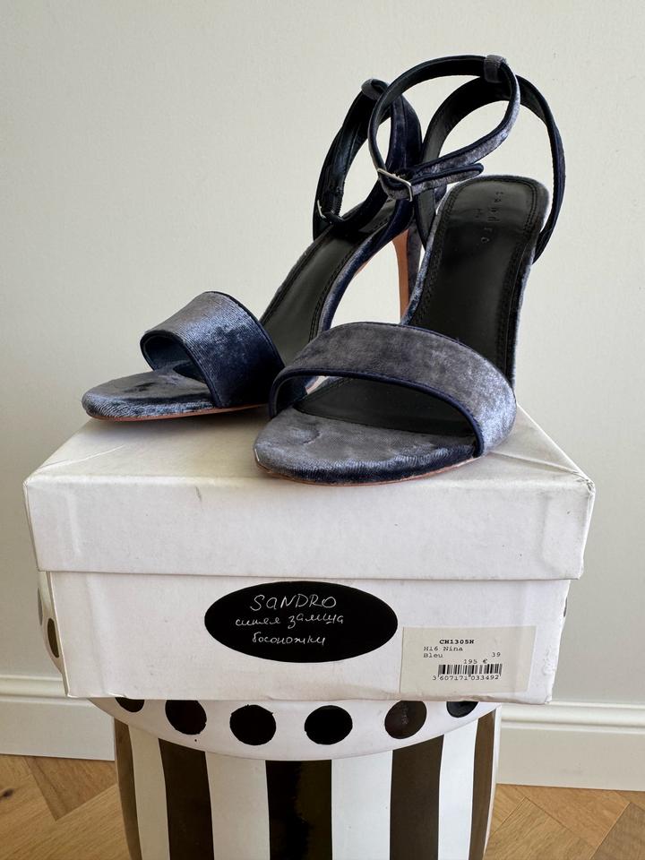 Элегантные босоножки на высоком каблуке от Sandro. Выполнены в благородном синем цвете из мягкого бархата. Новые, один выход на мероприятие. Имеется коробка, но уже чуть затертая. Пыльник утерян, но могу положить от другого бренда. Размер: EU 39 Высота каблука: 10 см Съёмный ремешок на щиколотке. Покупала в Париже за 195 евро Артикул: 588970
