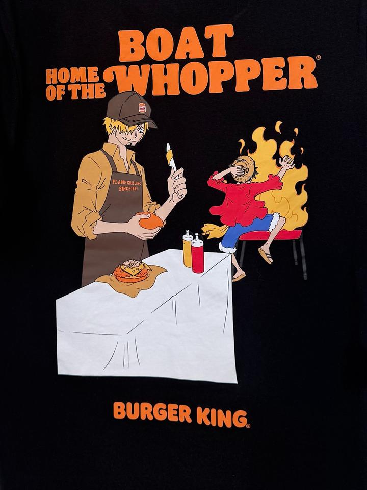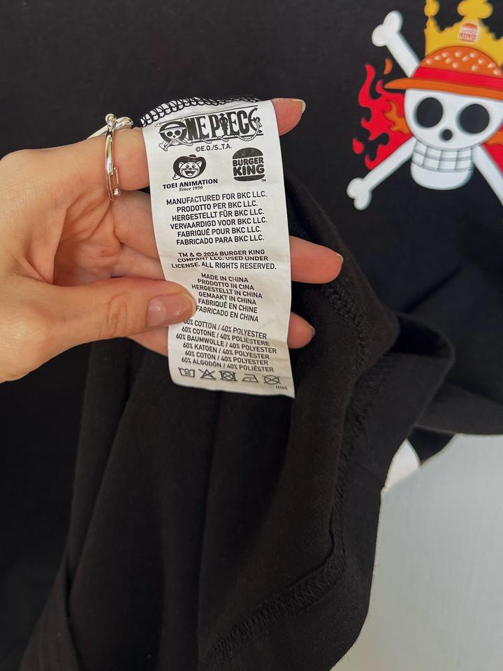 Эта футболка коллаборации One Piece x Burger King, выпущенная ограниченным тиражом. На ней изображены персонажи аниме Санджи и Луффи. 60% хлопок, 40% полиэстер Длина 71 см. Ширина плеч 42 см. Принт сделан очень качественно. Артикул: 589030