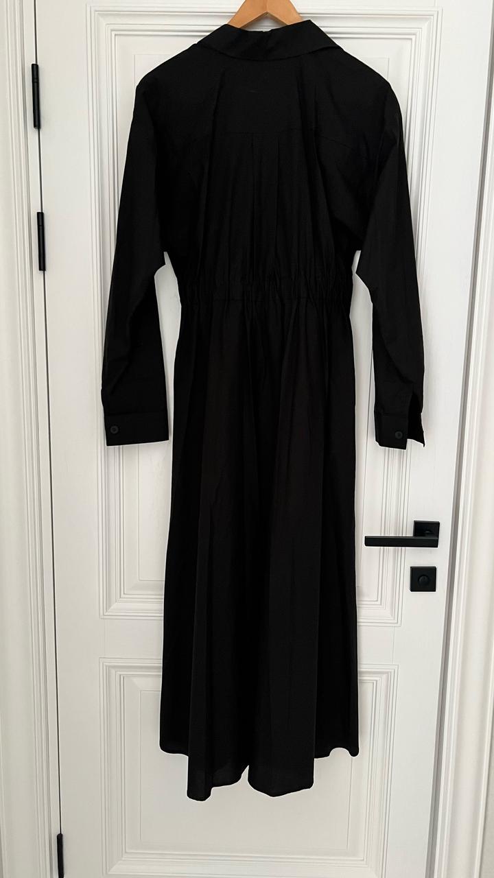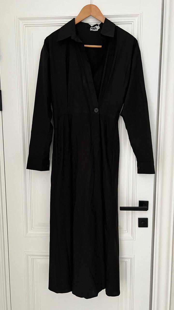 Продается черное платье из мягкого хлопка, Бренда Avventurista. Платье длинное, цельнокроеный рукав, сзади на поясе резинка, спереди на поясе 1 пуговица, по бокам карманы,размер указан на М, но подойдет до размера 48-50. Одевалось 1 раз на мероприятие.Цена 30000 тенге. Артикул: 589146