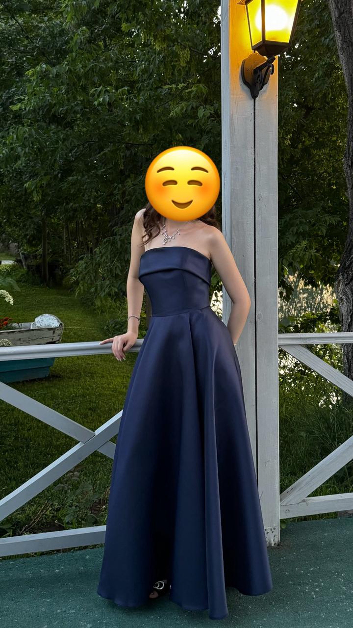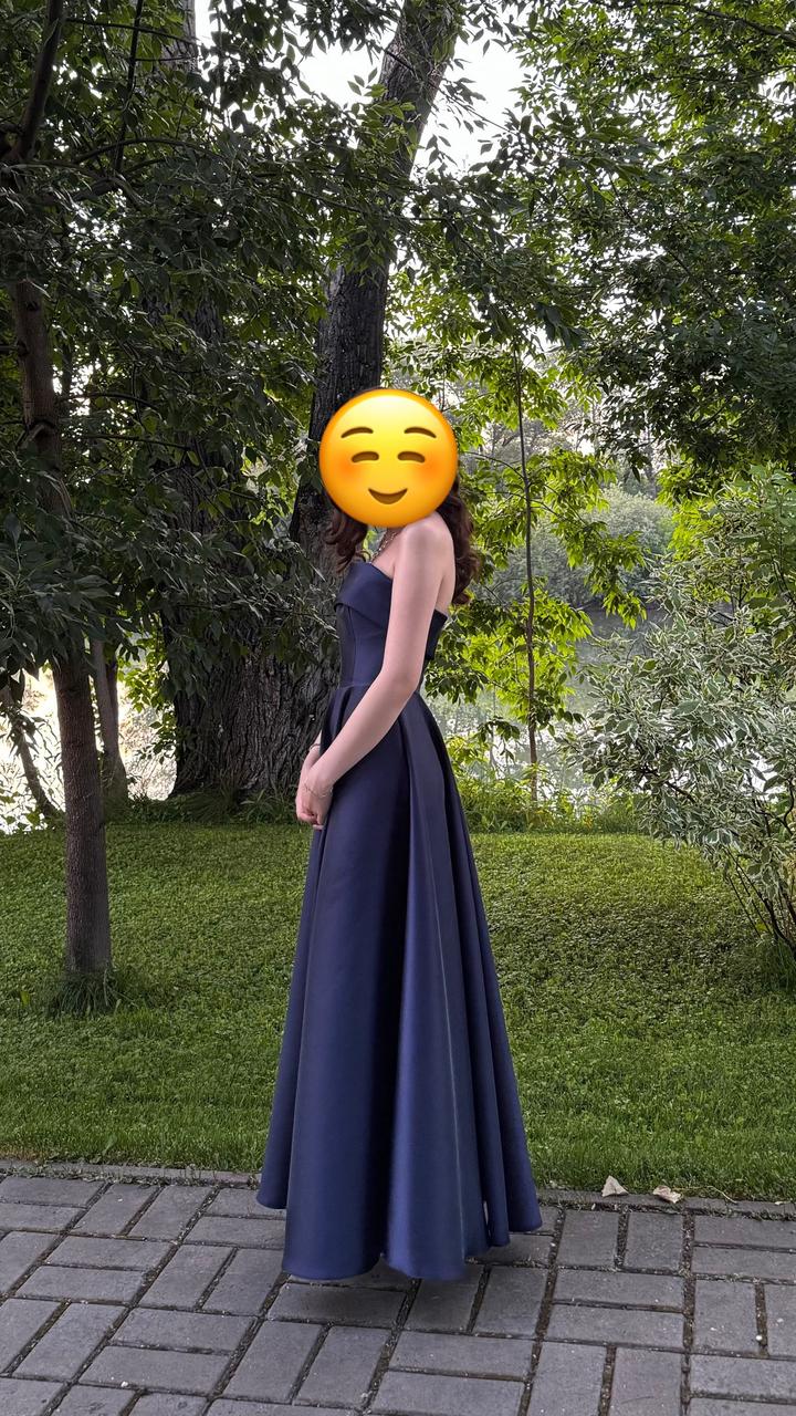 Платье на выпускной, темно синего цвета в пол, в отличном состоянии, носили только 1 раз. Модель с открытыми плечами и корсетным верхом. Ткань плотная. Размер XS, специально подшивали на маленький размер. Рост : 160-170 Артикул: 589219