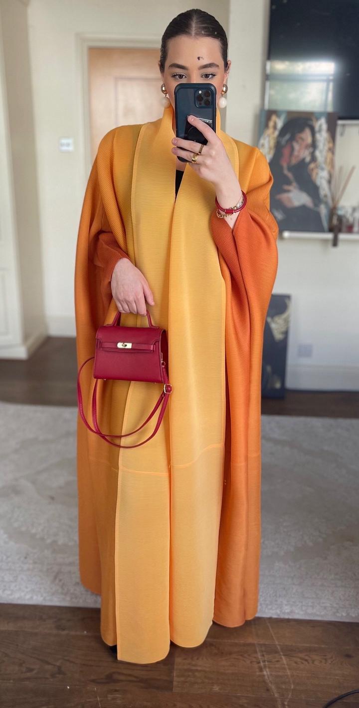 Абайя омбре жёлтого цвета в стиле «летучка» — это воплощение лёгкости и изящества. Плавный переход оттенков от мягкого светло-жёлтого к более насыщенному тону создаёт эффект солнечного сияния, придавая образу свежесть и утончённость. Свободный крой «летучка» обеспечивает комфорт и свободу движений, красиво драпируясь и подчёркивая силуэт без лишнего прилегания. Длина 145 см делает модель универсальной — она элегантно смотрится как в повседневных образах, так и в более нарядных сочетаниях. Артикул: 589226