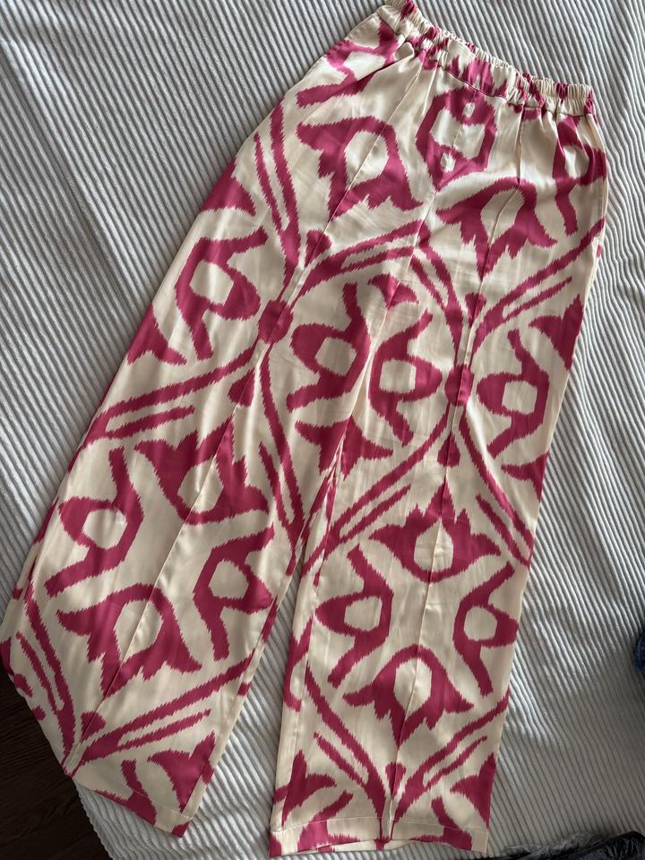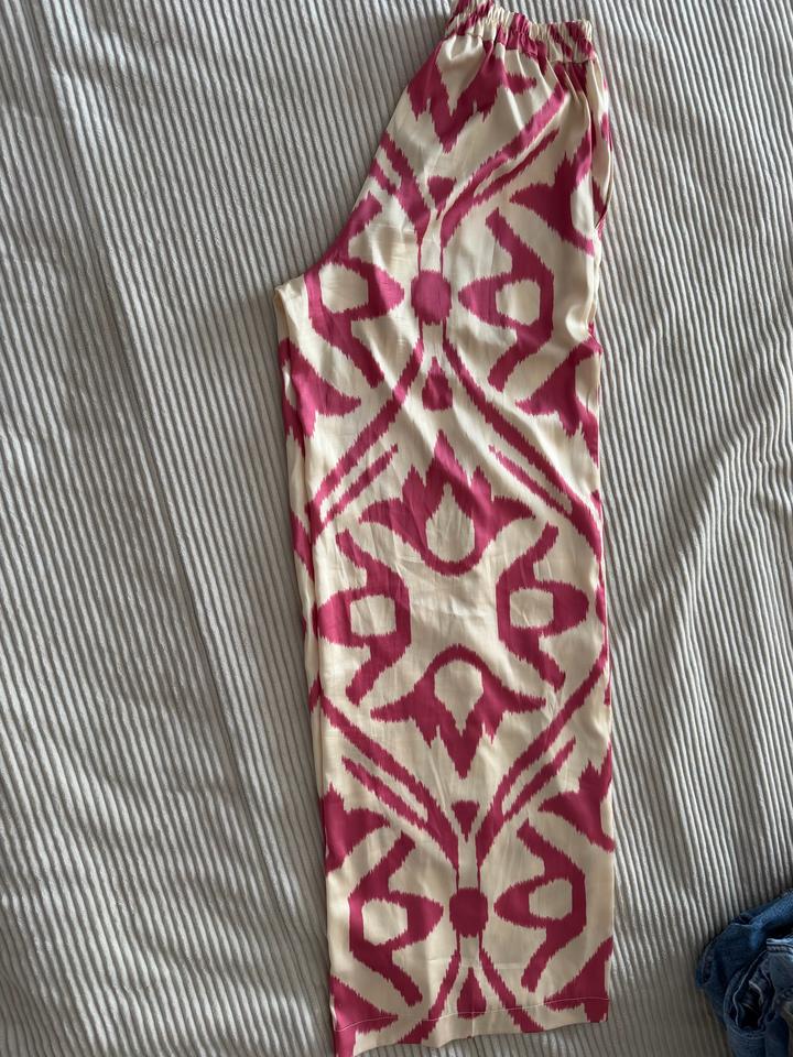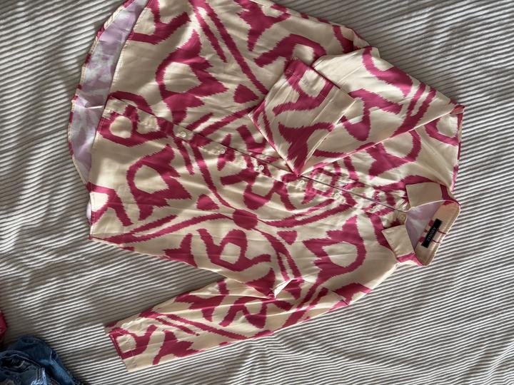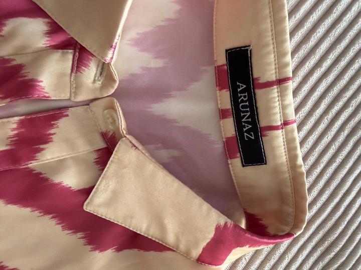 Продам шелковый костюм от arunaz, нежно сливочный с ярко розовым цвет, рубашка удлиненная и широкая, брюки хорошей длины, подойдет даже покрытым девушкам. Подойдет на размер с-м Артикул: 589239