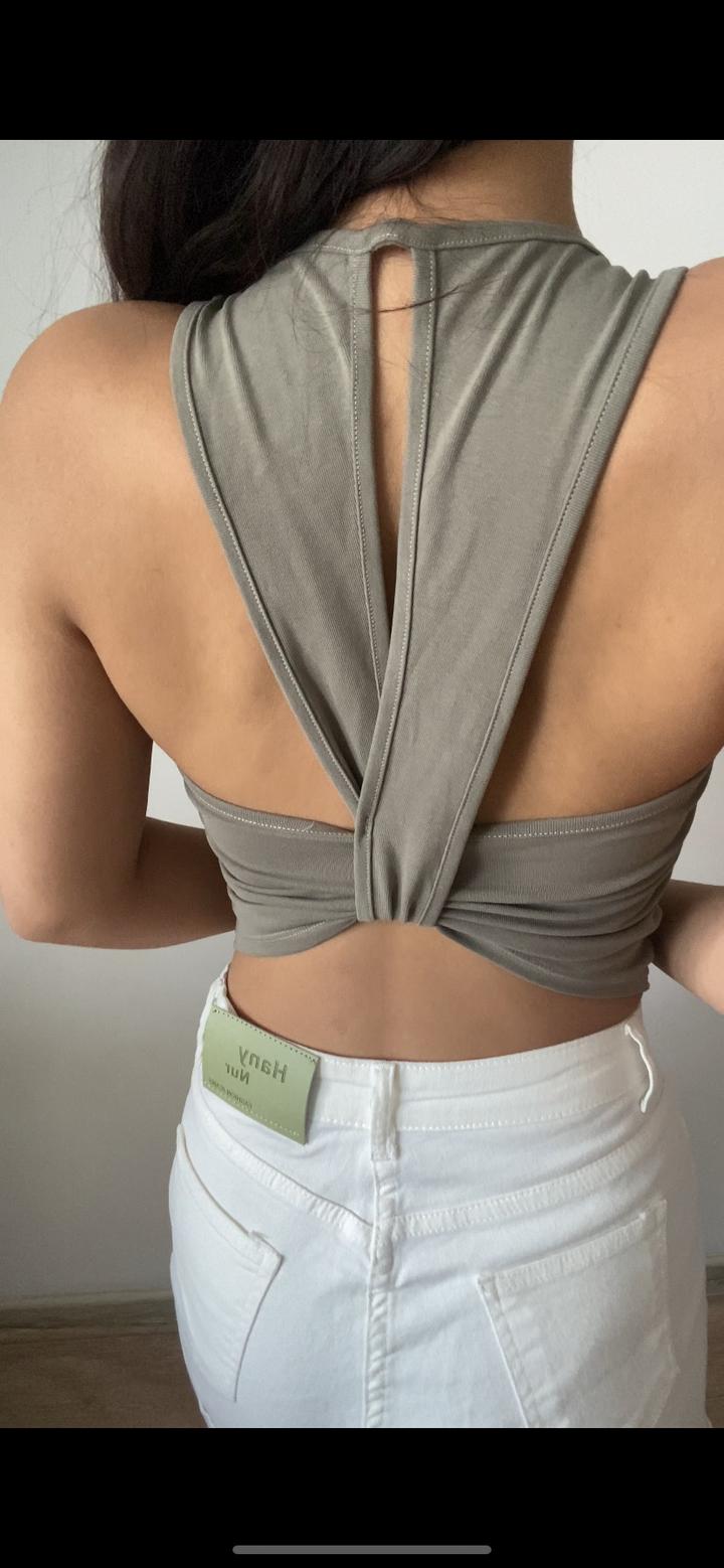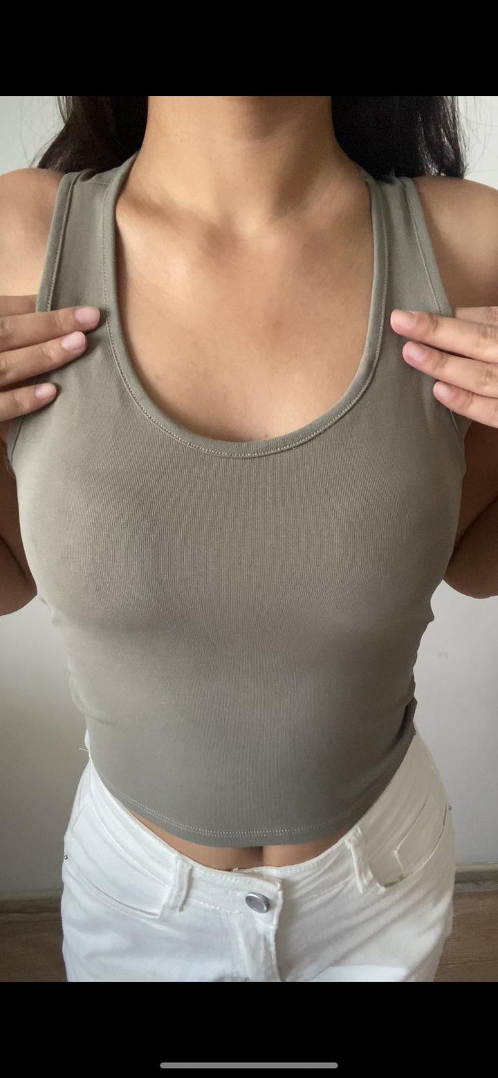 Топ с чашами под любой образ🔥комфортный и приятный в носке🤯 с красивой спиной. Можно носить без нижнего белья, они уже с чашками. В хаки цвете!Размер единый 42/46. Цена 3000тг💣новые вещи с этикетками‼️ Артикул: 589304