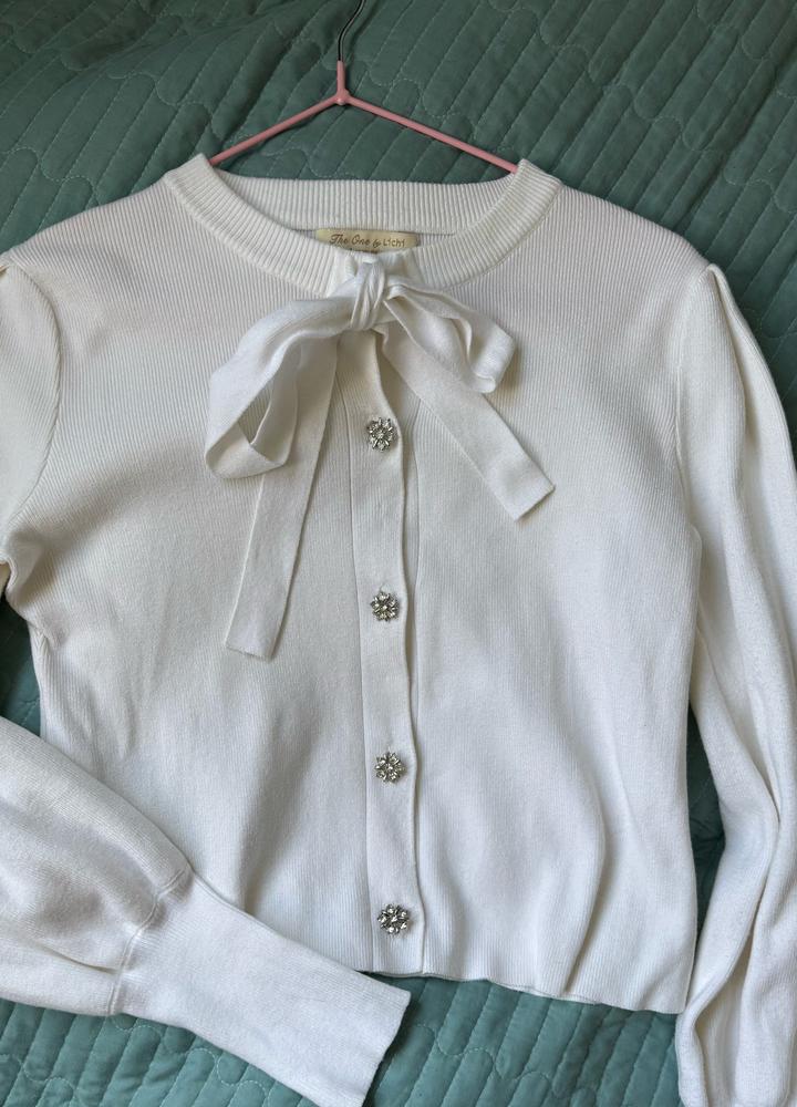 Красивый кардиган , подойдет на xs-s с зади есть пятна на фото видно Артикул: 589305