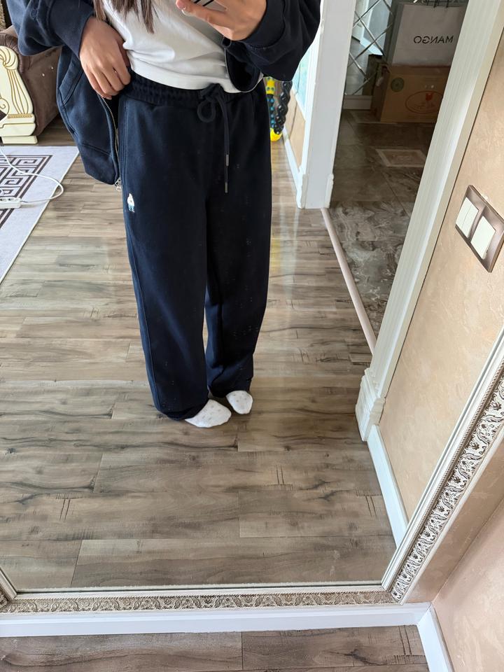 Прямые спортивные брюки Whoau. Цвет синий. Размер М. Материал трехнитка. Очень удобные на ежедневную носку. Надевала 2 раза. Продаю потому что размер не подходит. Артикул: 589336