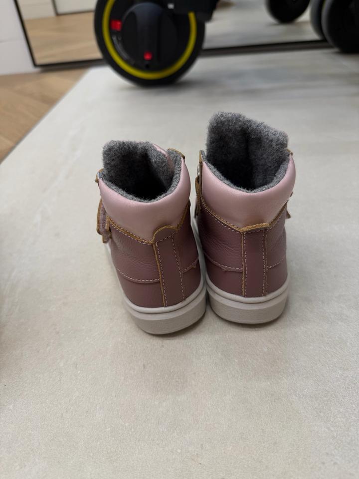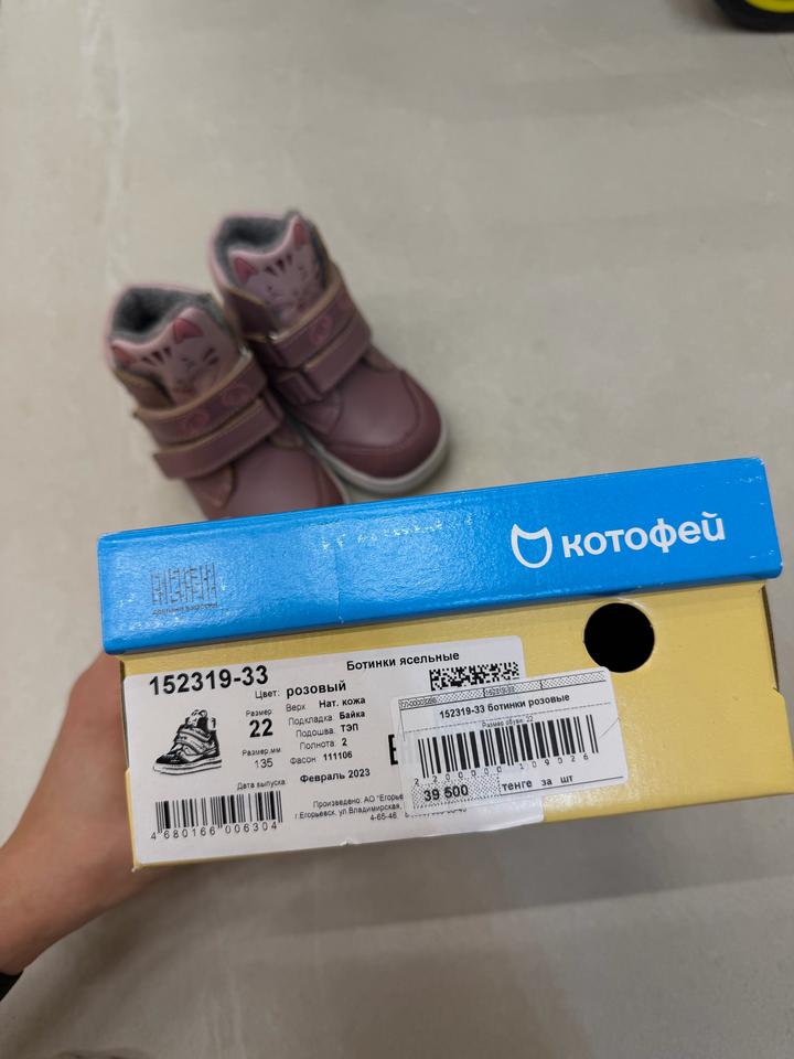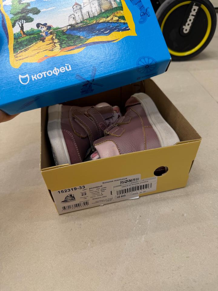 Ботинки на осень, розовые. Размер 22, натуральная кожа, подклад байка. В отличном состоянии так как только начинали ходить и поносили буквально неделю. Артикул: 589337