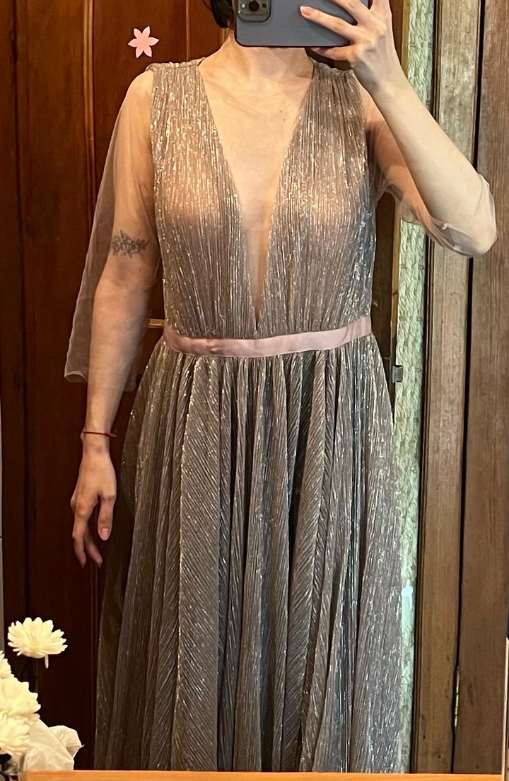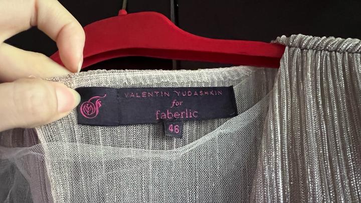 Полупрозрачное платье от Faberlic Дизайн Валентина Юдашкина Размер 46, можно 48 (платье просторное) Сетчатый материал Длинное Пояс нежно-розовый Артикул: 589416