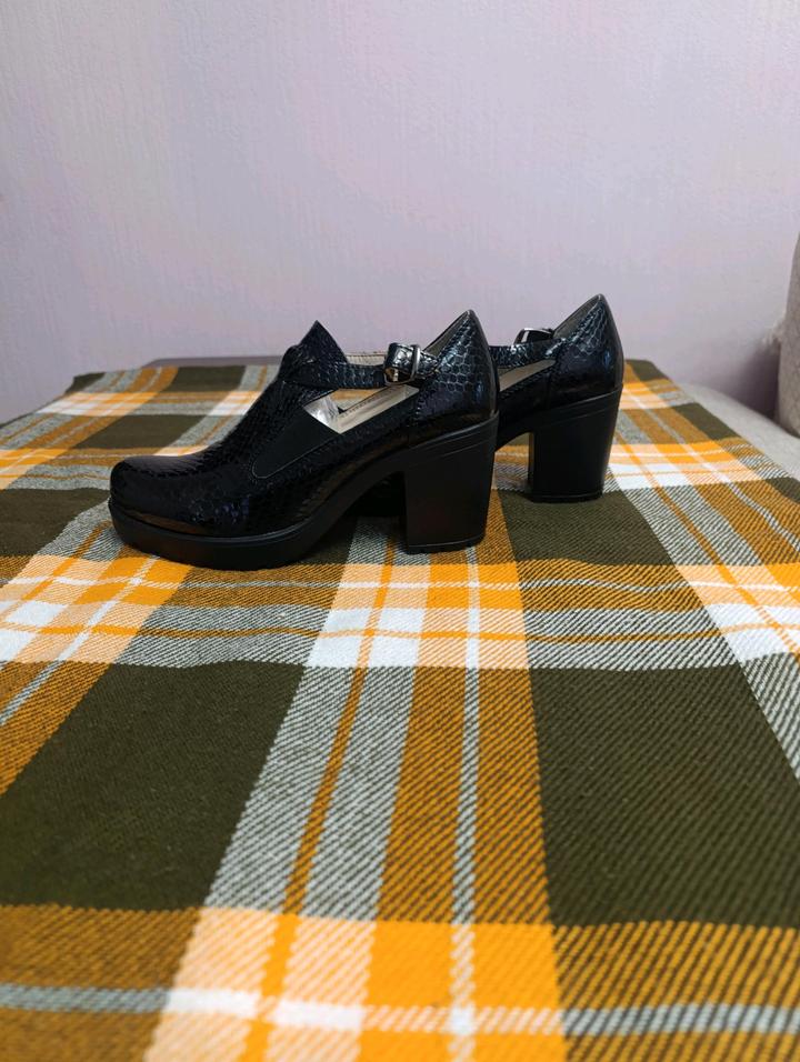 Туфли чёрные, удобные, устойчивый каблук, на небольшой платформе. Артикул: 589426