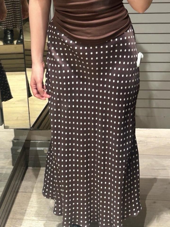 Элегантная юбка шоколадного оттенка с мелким белым горошком — идеальный баланс между классикой и трендом. Мягко облегает фигуру и красиво расширяется к низу, создавая изящный силуэт. ✨ Посадка: высокая/средняя (по фигуре) ✨ Длина: миди ✨ Крой: слегка расклёшенный, по косой (подчёркивает талию и бёдра) ✨ Ткань: гладкая, с лёгким сатиновым блеском Очень универсальная: подойдёт как для повседневных образов с футболкой и кедами, так и для более нарядных выходов с топом или каблуками. Артикул: 590285