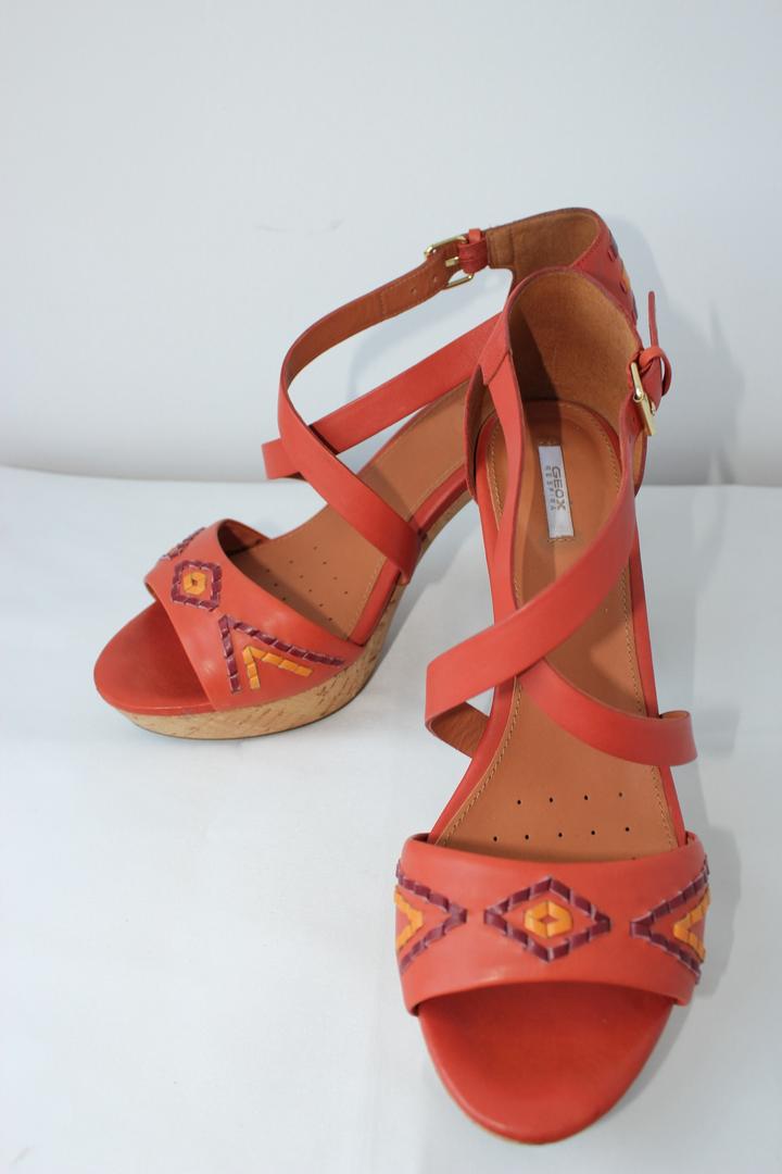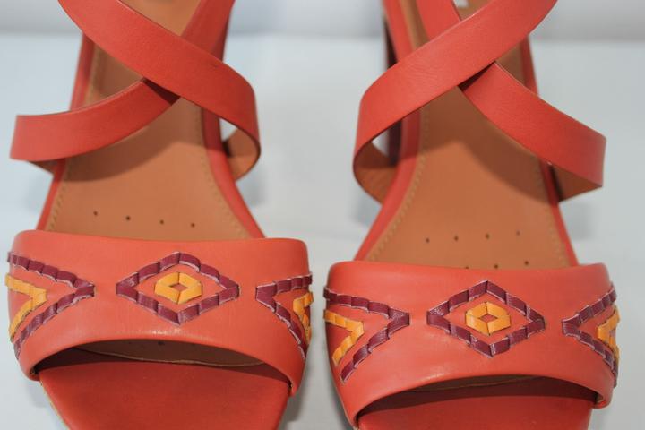 Яркие кожаные босоножки Geox, в размере 40. Исполены из кожи, стелька так же. Все декоративные детали выполнены из кожаных полосок. Новые в коробке. Артикул: 590291