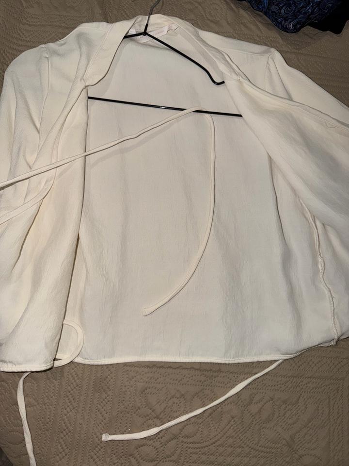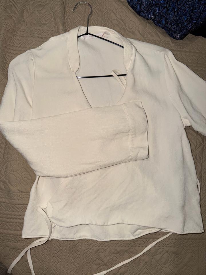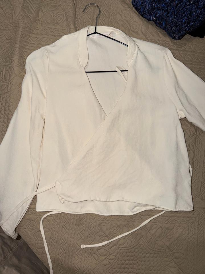 Кофта на завязках от Зара , 42-44 размера , ткань как шифон жатка , жемчужного цвета , состояние хорошее Артикул: 590332