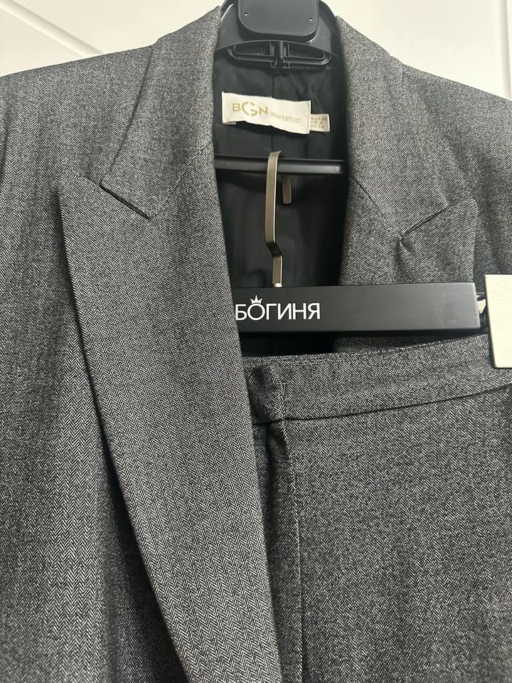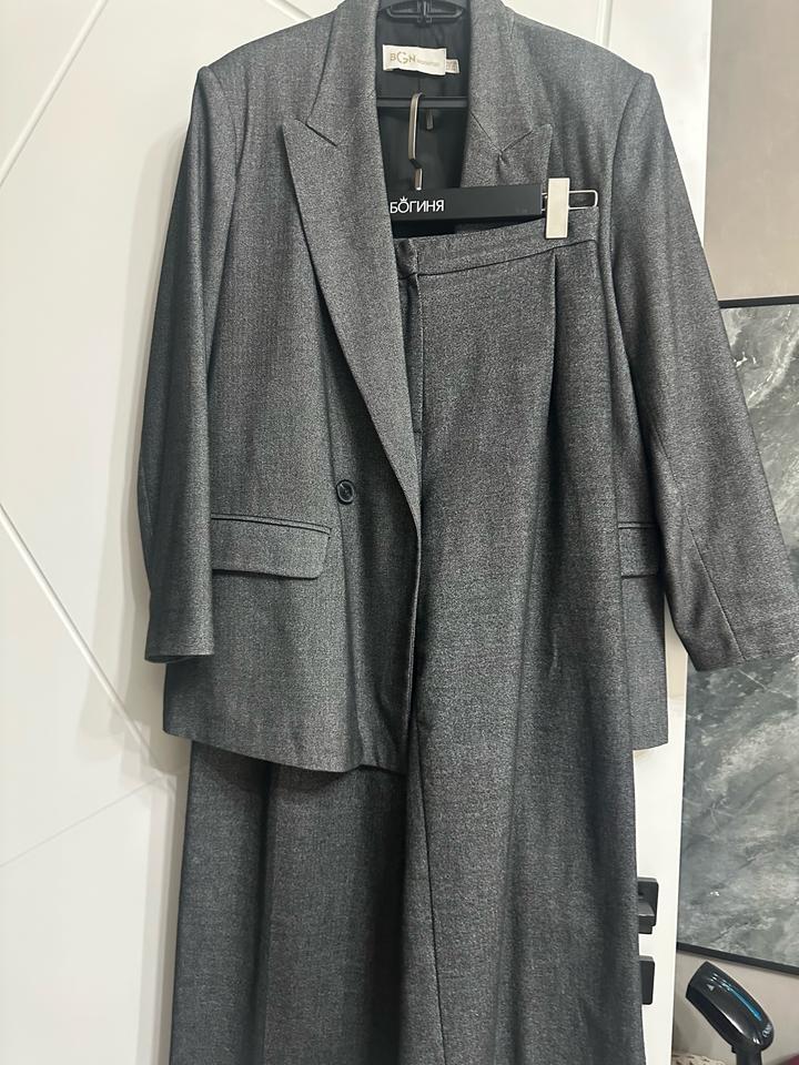 Стильный женский костюм в элегантном сером оттенке .Комплект состоит из Овер жакета и брюк паллацо. Костюм визуально вытягивает силуэт. Брюки классической длины,на рост до 1+7### ### ## ##Турция 🇹🇷 Артикул: 590437